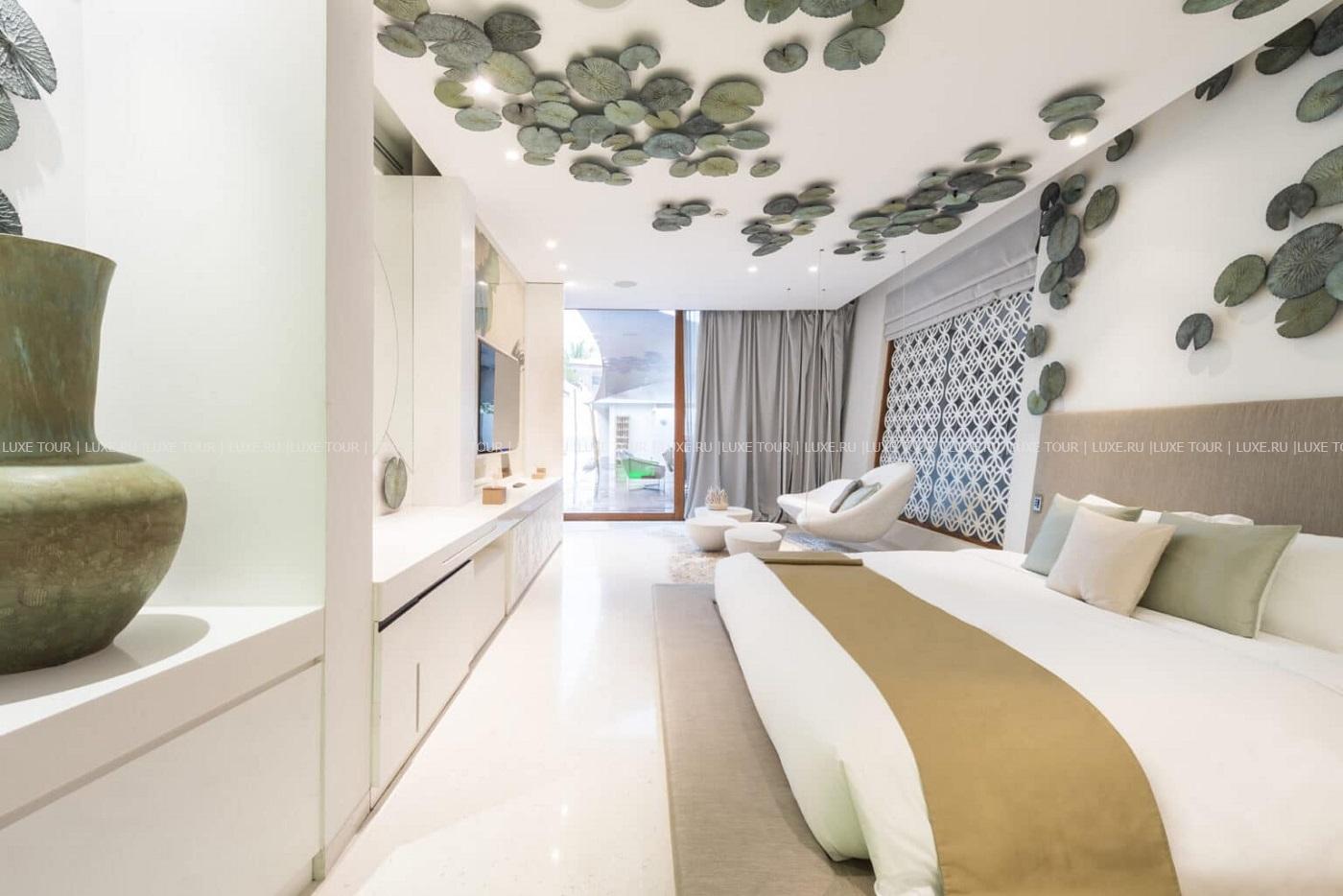 Отель располагает роскошными виллами и номерами различных категорий. Виллы выполнены в разных стилях по проекту ведущих дизайнерских и архитектурных студий из разных стран, украшены произведениями искусства тайских мастеров и располагают большими персональными бассейнами и террасами с видом на лазурное Андаманское море. В каждом номере: The Owner’s Suite: