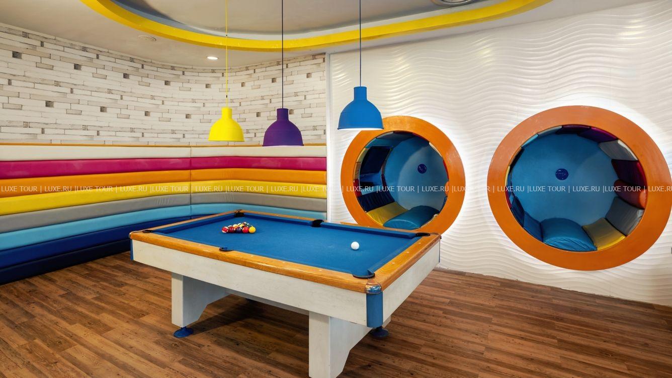 В отеле есть детский бассейн, работает клуб для детей от 4 до 12 лет, игровая комната для с бильярдом, настольными и видеоиграми. Также предлагаются спортивные и развлекательные мероприятия для подростков 13-18 лет. Возможны услуги няни (по запросу).