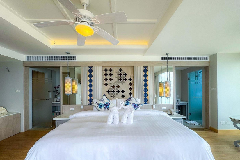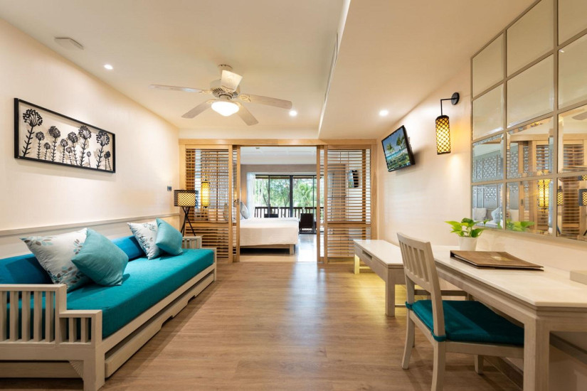 - 50 м2. Состоит из спальни с кроватью king-size или двумя кроватями twin, гостиной зоны, ванной комнаты, балкона с видом на океан.