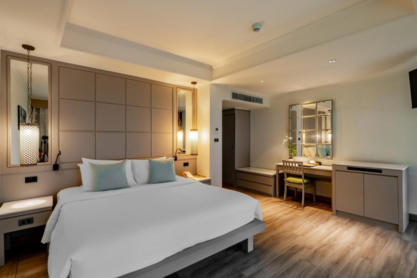 - 45-50 м2. Состоит из спальни с кроватью king-size или двумя кроватями twin, гостиной зоны, ванной комнаты, балкона с видом на море.