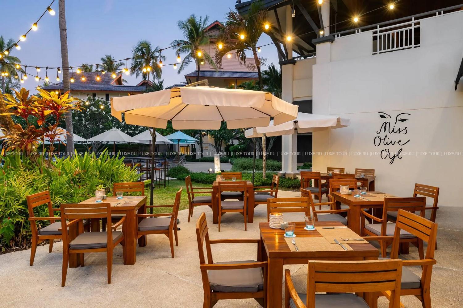 • Mr Tomyam – ресторан и бар с акцентом на тайскую кухню, живописной открытой зоной и видом на бассейн и Андаманское море.