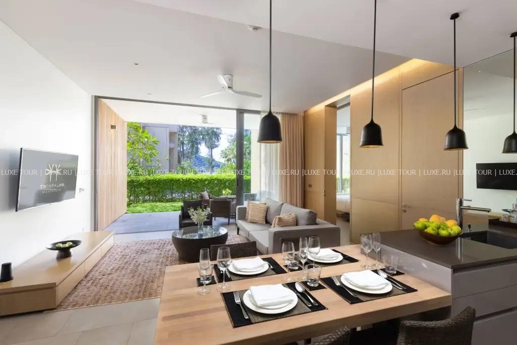 - 453 м2. Состоит из трех спален с двумя кроватями king-size и двумя кроватями twin, гостиной с обеденной зоной, кухни, трех ванных комнат, меблированной террасы на крыше с бассейном и панорамным видом на море. Номера расположены рядом с пляжем. Максимальное размещение – 6 человек.