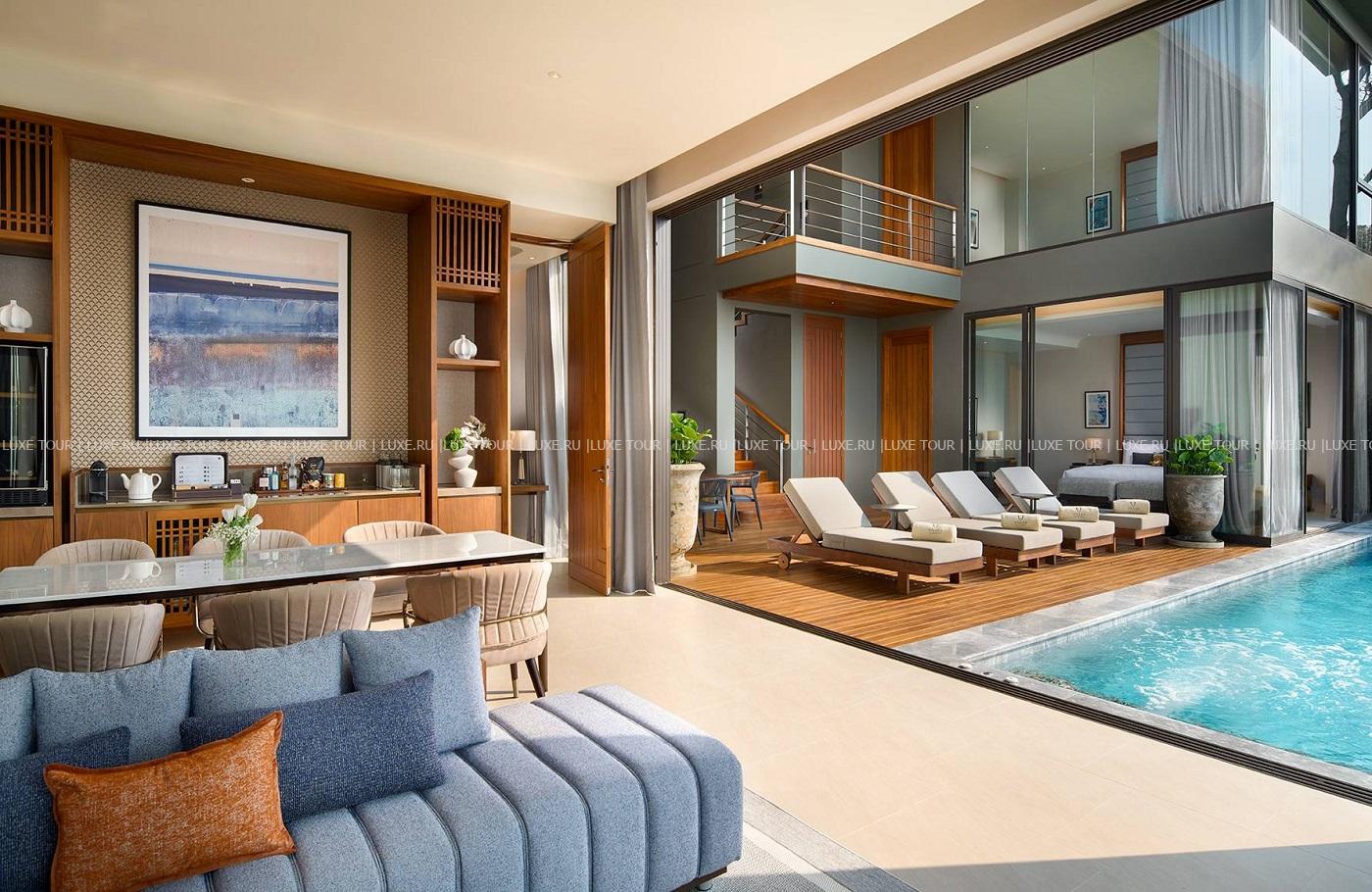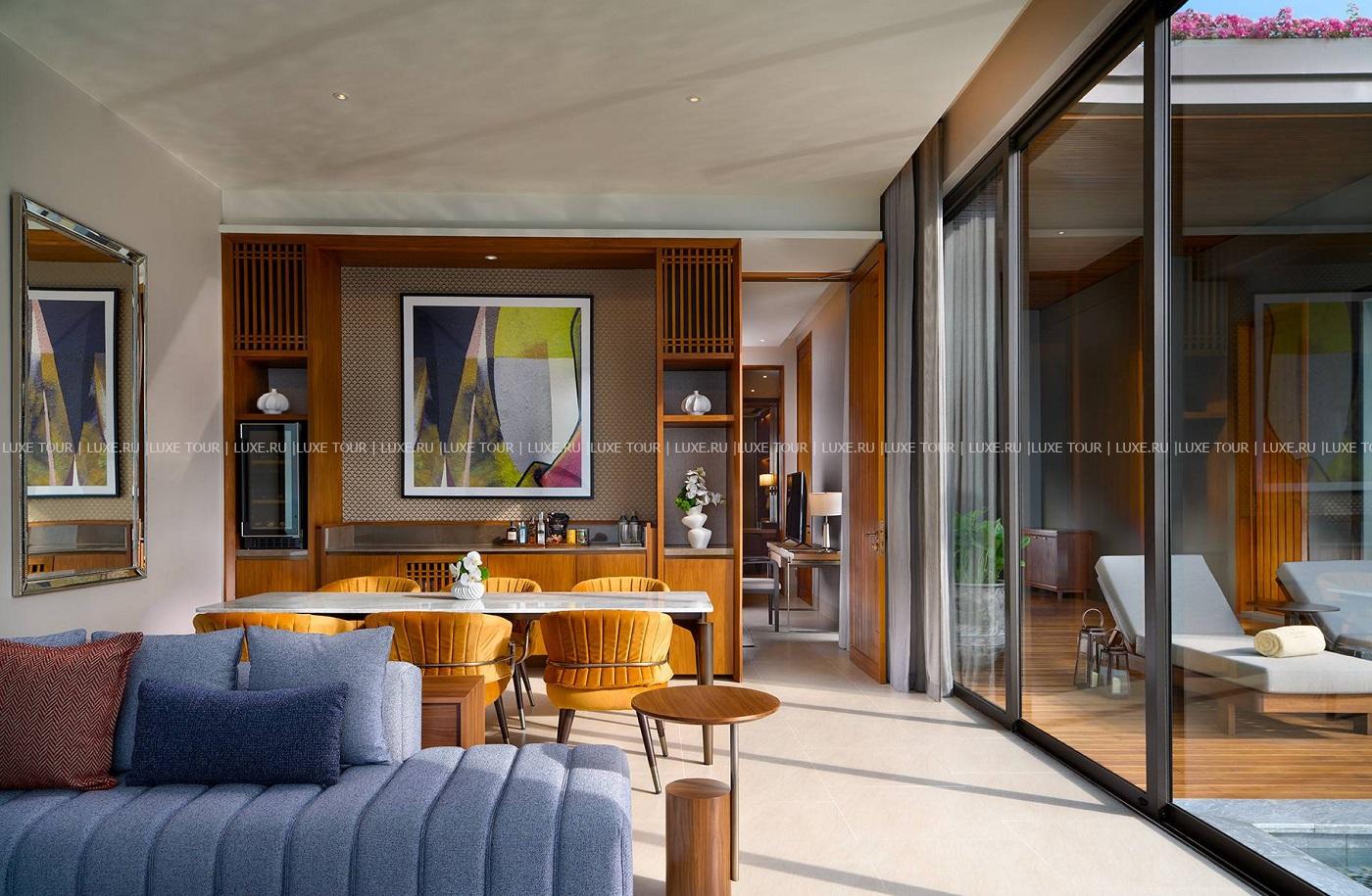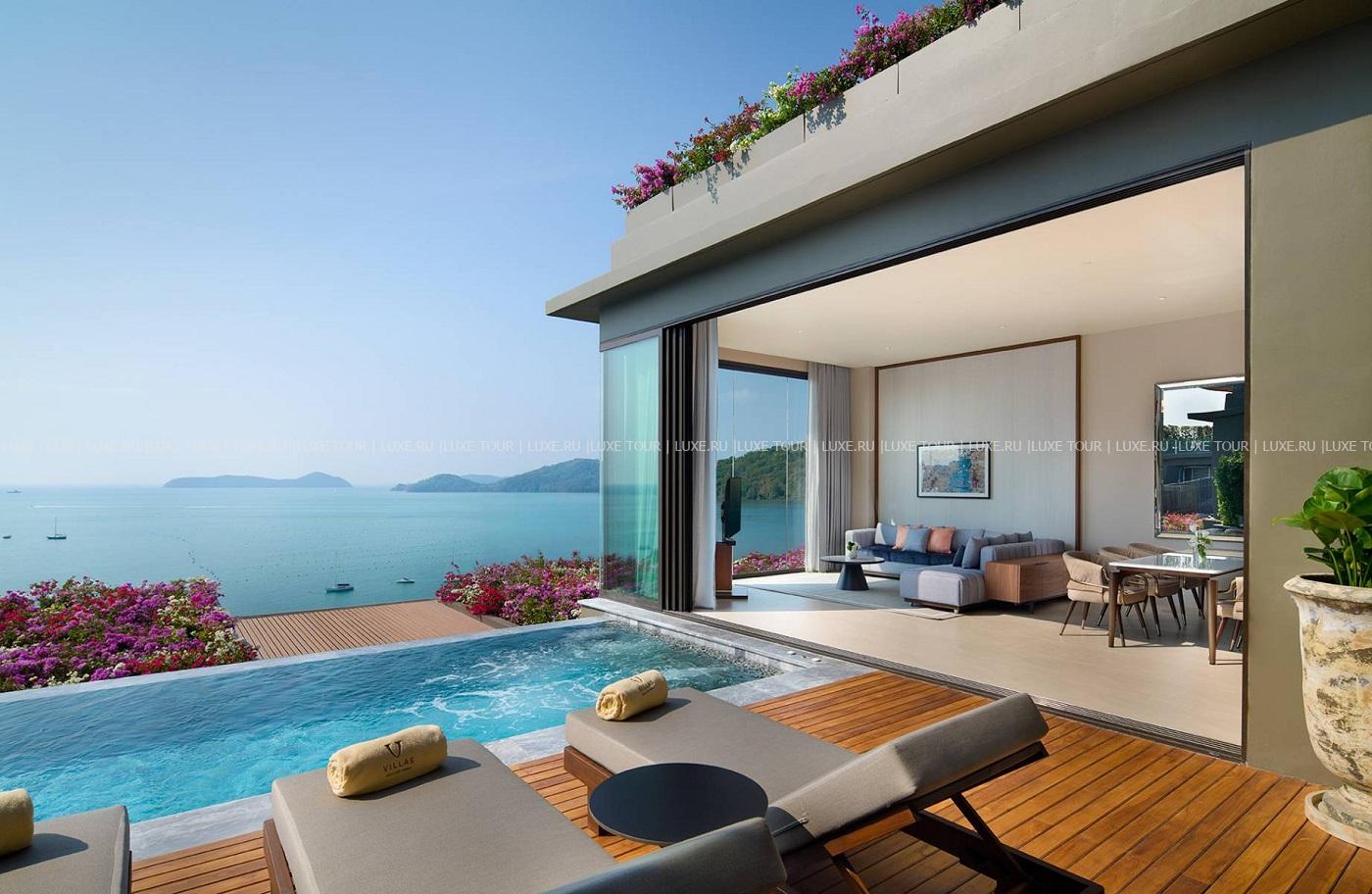 V Villas Phuket, MGallery разместился на склонах 39-метрового холма, поросшего тропическим лесом и возвышающегося над золотистой полосой пляжа и бирюзовой гладью бухты Ао Йон. Современный бутик-отель органично вписан в природный ландшафт и спроектирован так, чтобы гости могли отовсюду любоваться фантастическим панорамным видом на Андаманское море и прибрежные пейзажи: с террас шикарных вилл с персональными бассейнами и из большого бассейна-инфинити, расслабляясь в павильоне спа-центра, наслаждаясь изысканной кухней в ресторане или потягивая коктейль на террасе бара. V Villas Phuket, MGallery – идеальный выбор для ценителей роскошного отдыха в уединенной атмосфере.