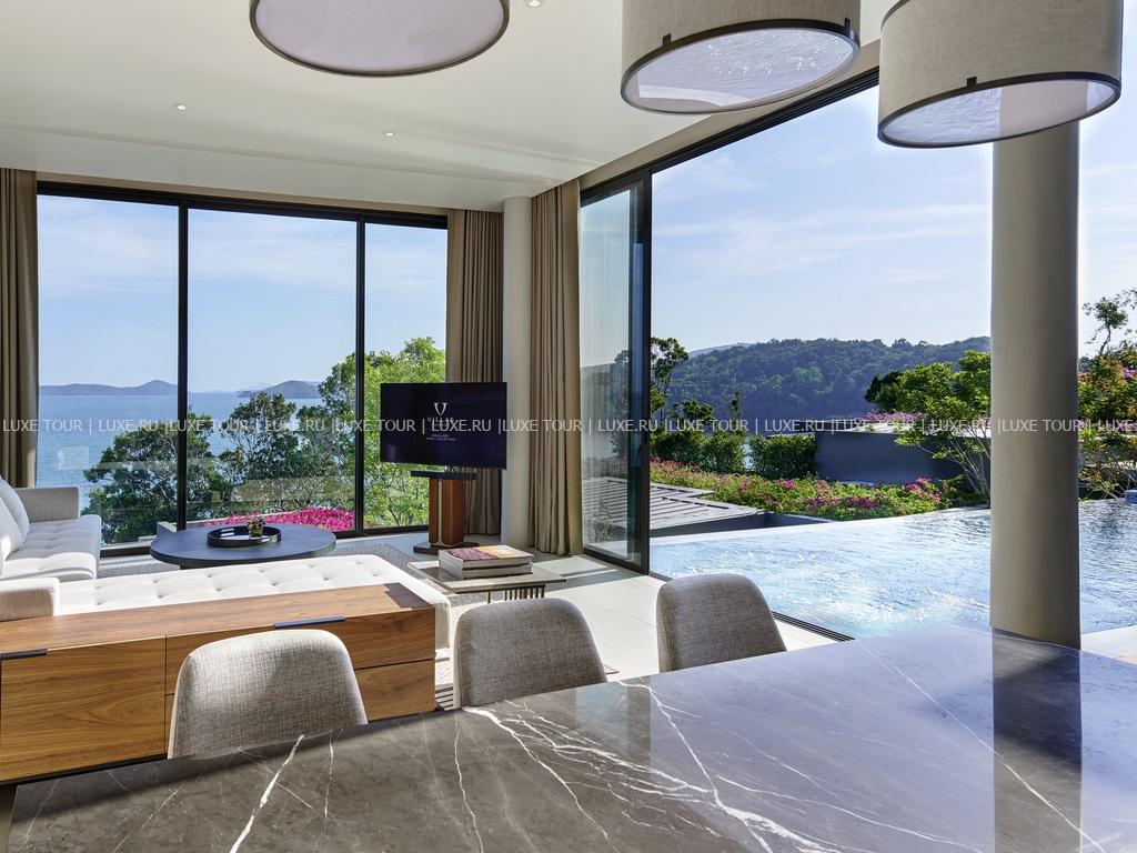 - В отеле виллы, расположенные на высоких склонах холма. Дизайн просторных вилл выполнен в элегантном минималистском стиле с элементами традиционного тайского декора, а из комнат с панорамными, во всю стену окнами и с террас с персональными бассейнами открывается потрясающий вид на поросшие лесами горы, живописную бухту Ао Йон и сверкающую гладь Андаманского моря. Гостям вилл предоставляются круглосуточные услуги персонального дворецкого.