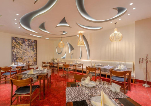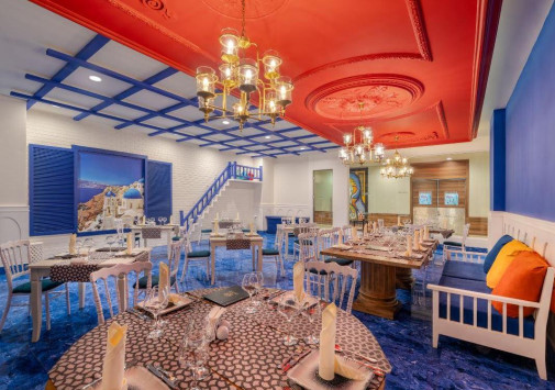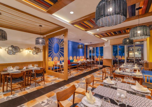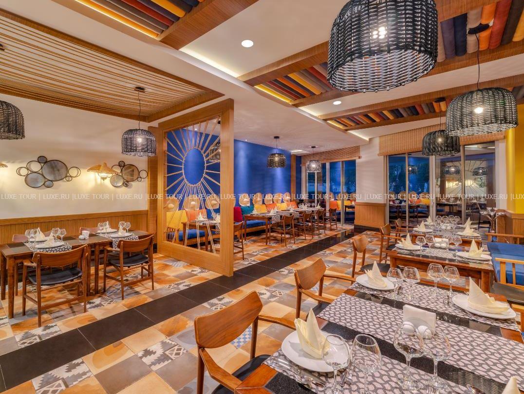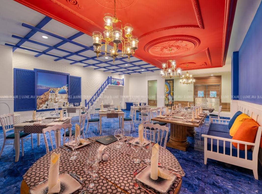 - Ресторан a la carte Risus, оформленный в яркой палитре, представляет средиземноморскую кухню.