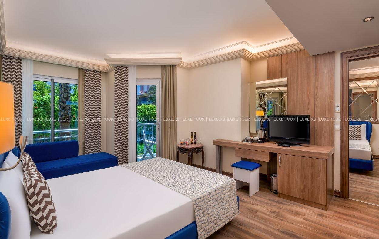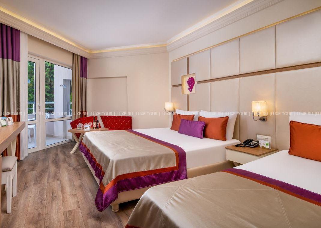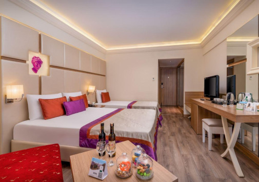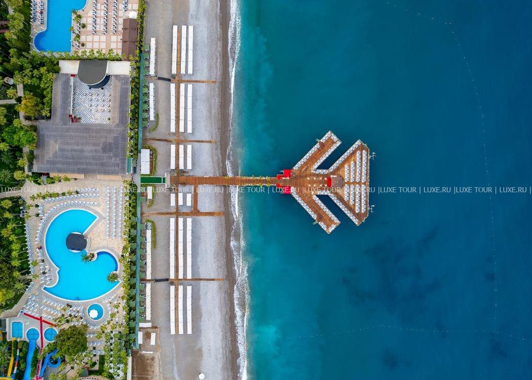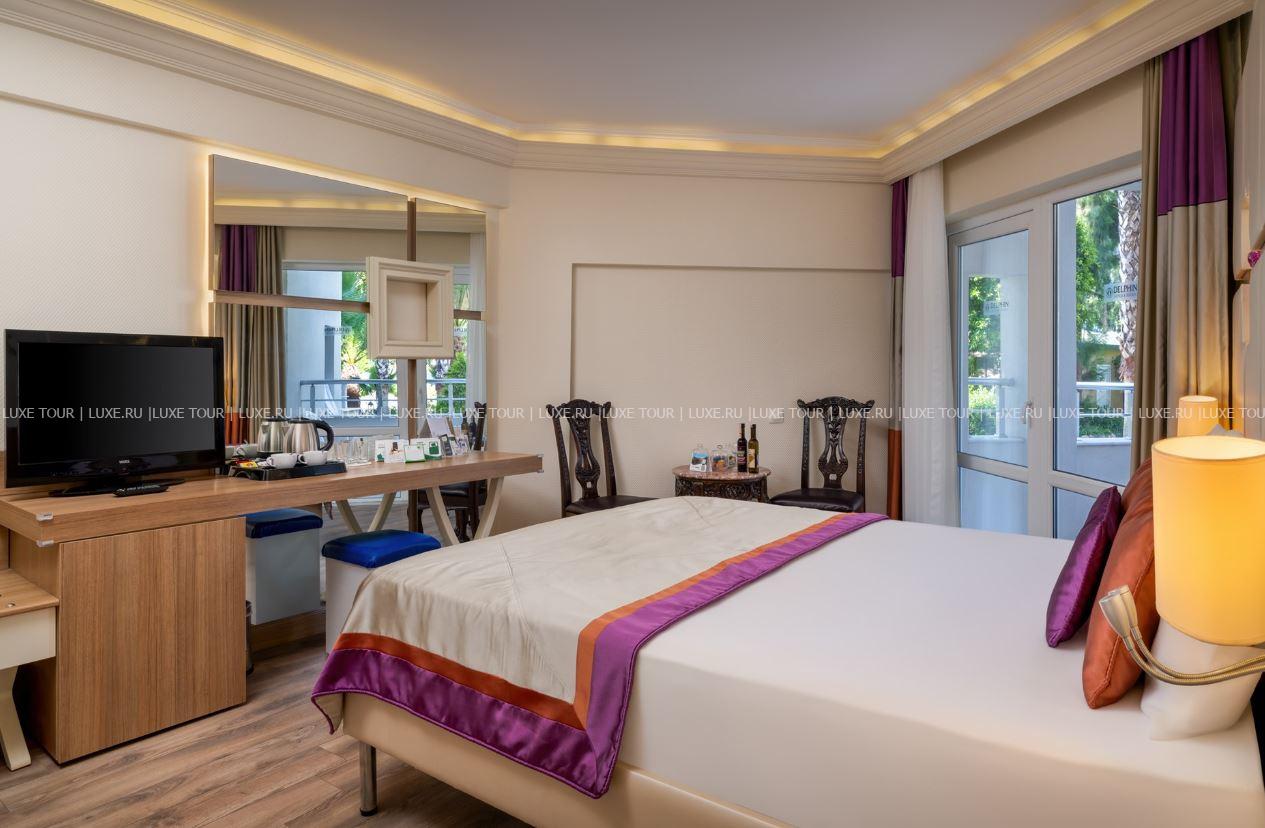 Delphin Botanik разместился на 9 гектарах живописной территории с утопающими в зелени современными зданиями и комплексом лазурных бассейнов, у широкого частного пляжа и сверкающего Средиземного моря. Отель располагает продуманной инфраструктурой для отдыха всей семьи: стильные комфортабельные номера с балконами, многочисленные рестораны и бары, великолепный Spa-центр, аквапарк и Луна-парк, мини-клуб, спорт и масса развлечений на любой вкус и возраст. Delphin Botanik – идеальный выбор для семейного и пляжного отдыха на солнечном турецком побережье.