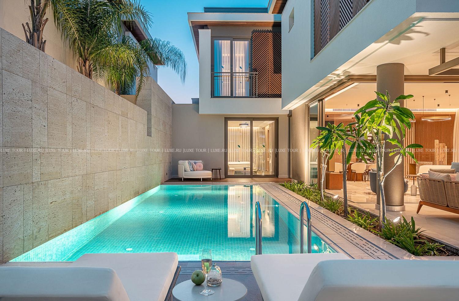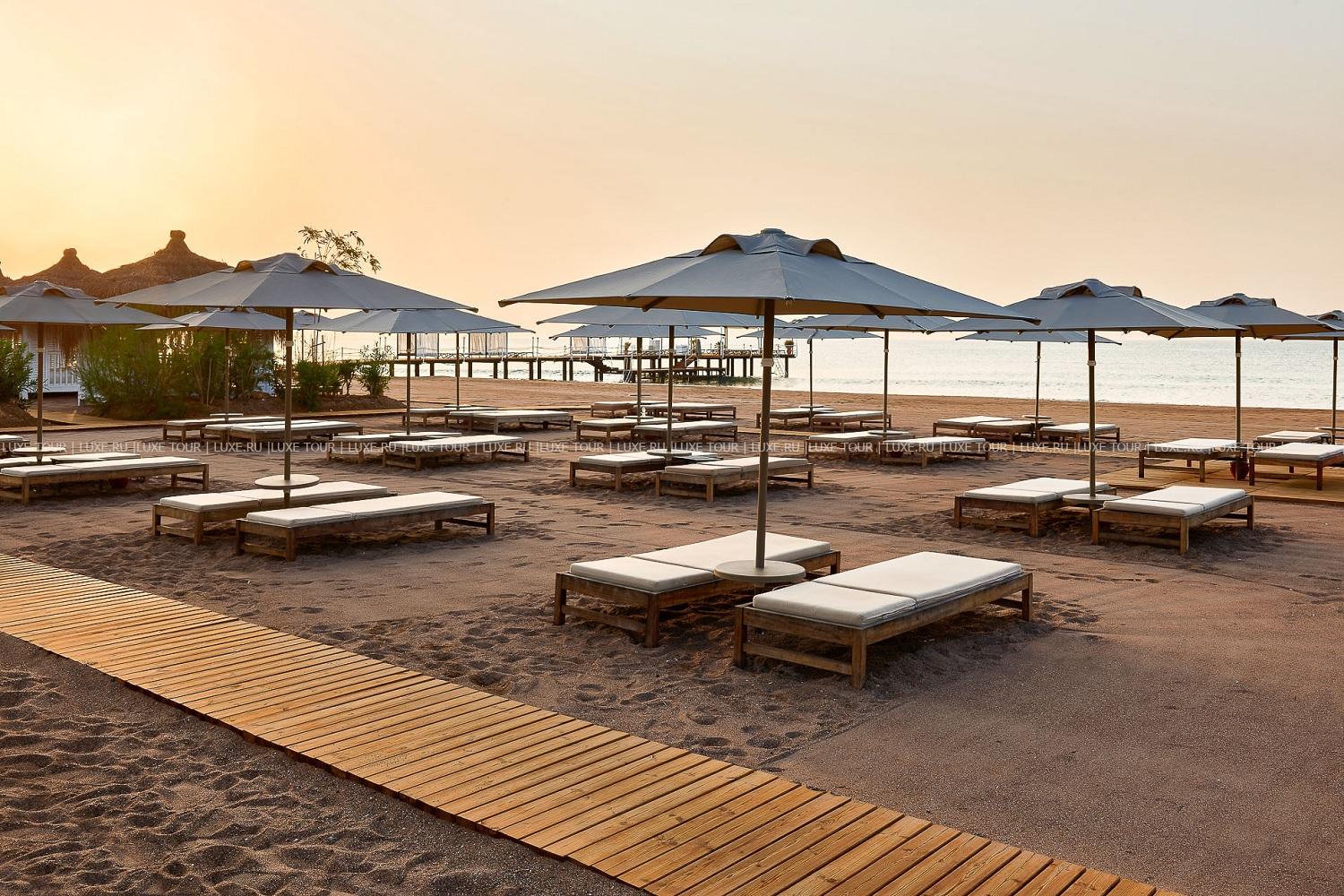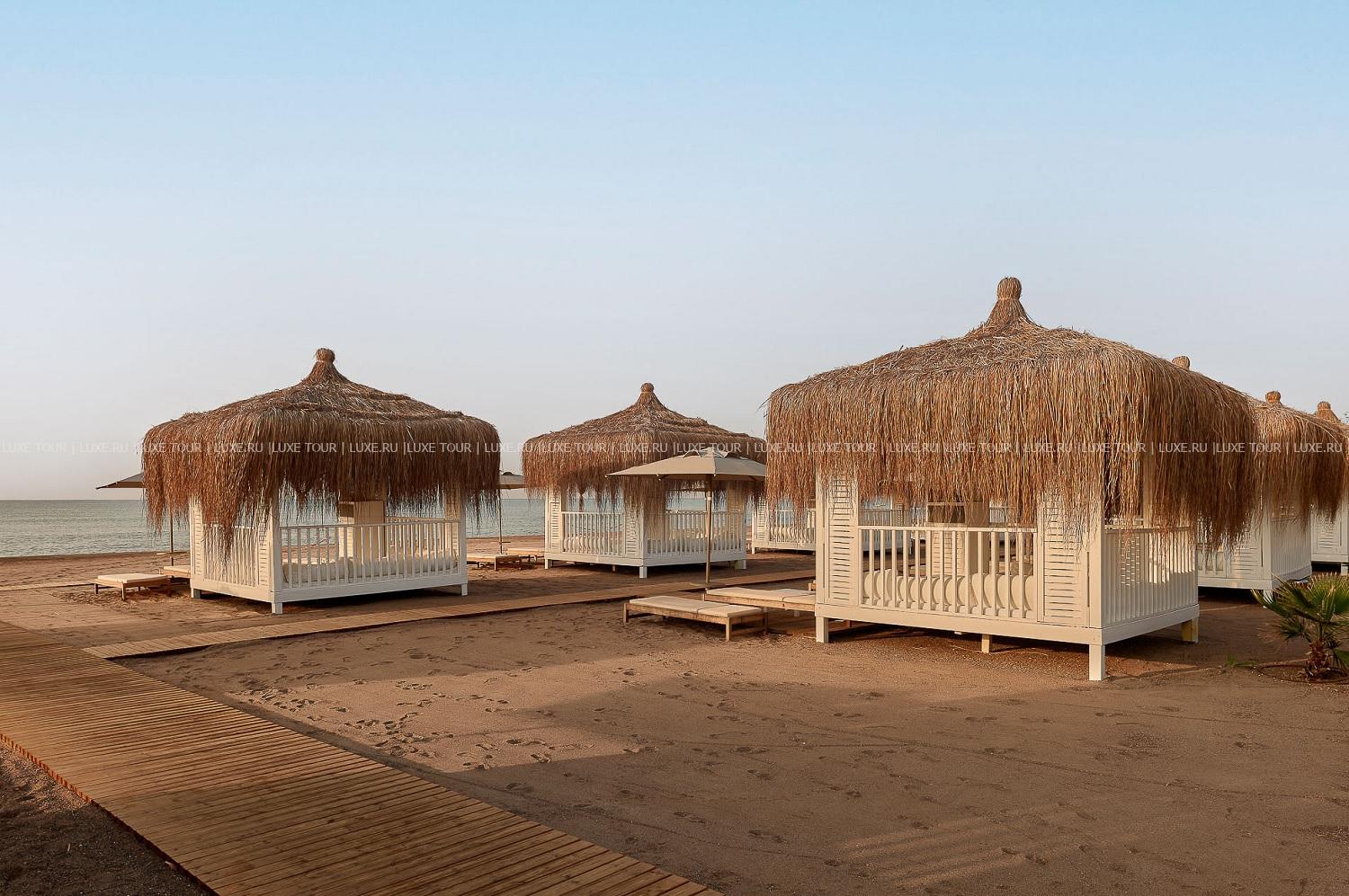 Отель расположен у частного пляжа с павильонами для отдыха, которые предоставляются индивидуально каждой вилле.