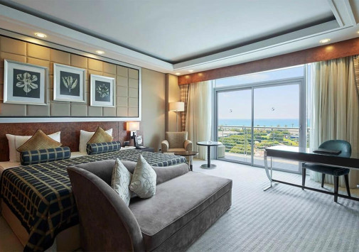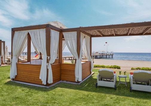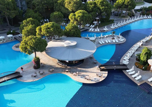 Здесь на территории 120 кв. км к услугам гостей предлагаются разнообразные рестораны, бары и кафе, детский клуб, открытый бассейн, водный парк, 7 теннисных кортов, школа дайвинга, площадки для баскетбола, волейбола, а также спа-центр, где доступны крытый бассейн, турецкий хаммам, сауны, парная, гидромассажный душ, гидромассажная ванна, тренажерный зал, салон красоты и парикмахерская.