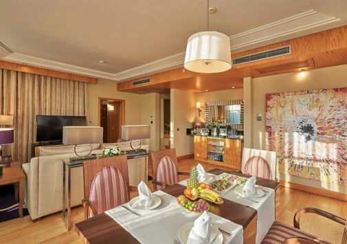 • Ресторан Elegance был открыт, чтобы предложить гостям villa, king и presidental suites эксклюзивные блюда на завтрак, обед и ужин. Гости, проживающие в других и номерах, могут воспользоваться этой привилегированной услугой за отдельную плату.