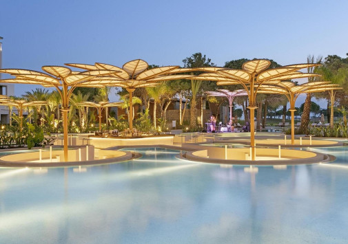 На территории отеля имеются открытый и крытый подогреваемые бассейны для взрослых и детей, включая бассейн Azure, бассейн для активностей, L-образный бассейн на пляже, бассейн гольф-клуба, бассейны-лагуны рядом с гольф-клубом и пляжем, а также аквапарк (3000 м2) с 13 водными горками и детской секцией.