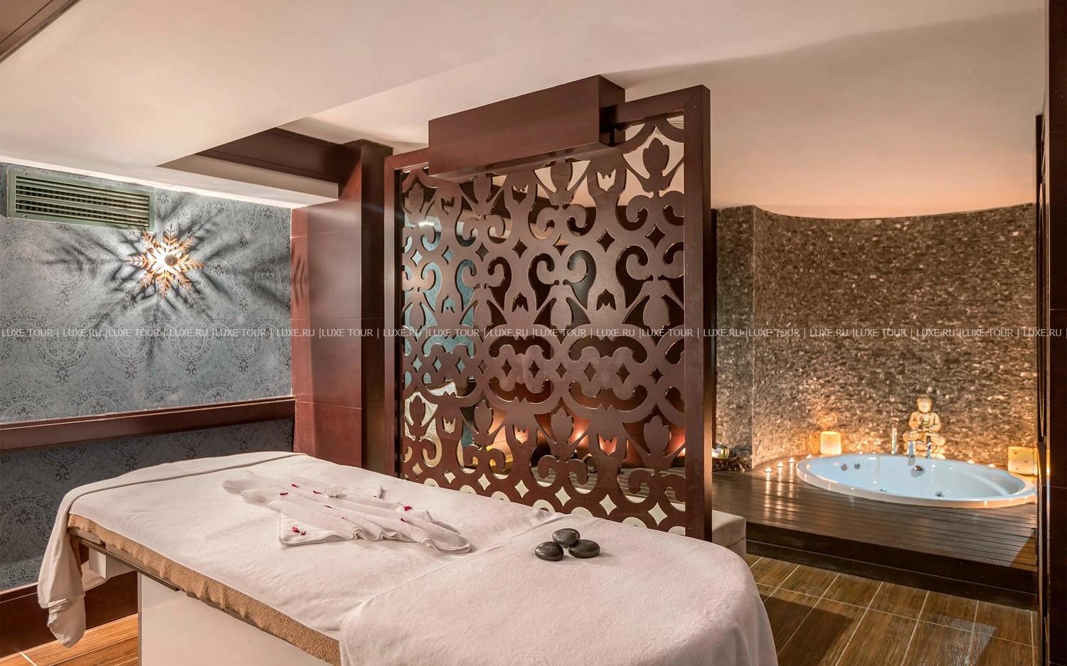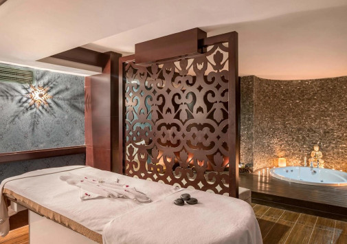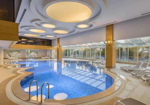 Отель располагает великолепным Spa-центром с крытым подогреваемым бассейном, гидромассажной ванной, хаммамом, сауной, ароматической парной, зоной отдыха и процедурными кабинетами, где предлагается широкий спектр массажей и услуг по уходу за телом и лицом.