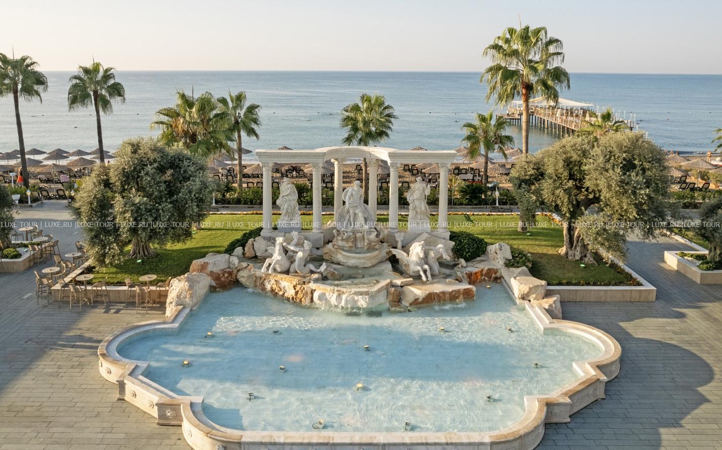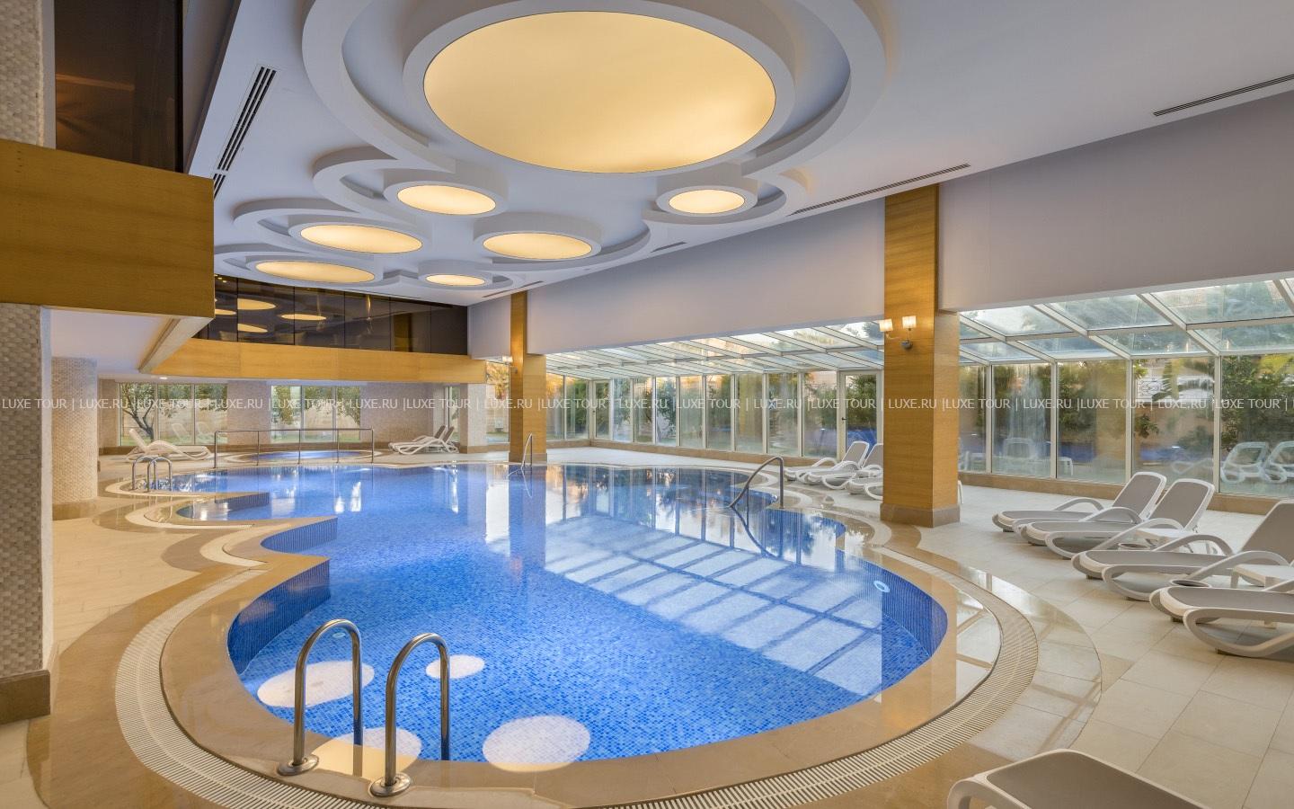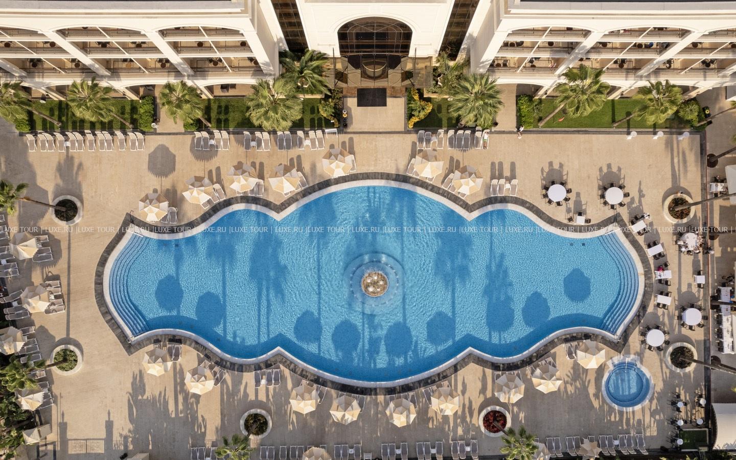На территории отеля находятся: главный открытый бассейн с подогревом (2850 м3), подогреваемый бассейн с водными горками, открытый и крытый бассейны Deluxe, открытый гидромассажный бассейн Deluxe, открытый и крытый бассейны в Spa-центре, а также детский бассейн с морской водой на пляже, открытый подогреваемый бассейн в мини-клубе, аквапарк с водными горками и аттракционами, крытый детский бассейн, открытый и крытый детские бассейны Deluxe.