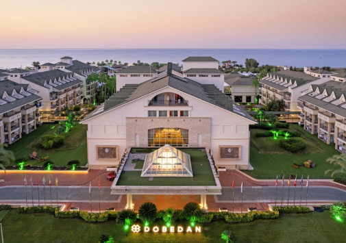 Dobedan Exclusive Hotel & Spa раскинулся на 64 000 м2 живописной территории с бассейнами и аквапарком, у великолепного частного пляжа, протянувшегося на 300 метров у лазурного Средиземного моря. Благодаря хорошо продуманной инфраструктуре отель предлагает гостям незабываемый отдых. Комфортабельные номера с балконами и элегантным декором представлены разными категориями, многочисленные рестораны приглашают в гастрономическое путешествие по всему миру, а бары – к отдыху в уютной атмосфере, в Spa-центре можно расслабиться в хаммаме и в массажном кабинете, детей ждут веселые занятия в мини-клубе, а взрослых – спорт и развлечения на любой вкус и возраст. Dobedan Exclusive Hotel & Spa сочетает эксклюзивный сервис и волшебную красоту Средиземноморья.