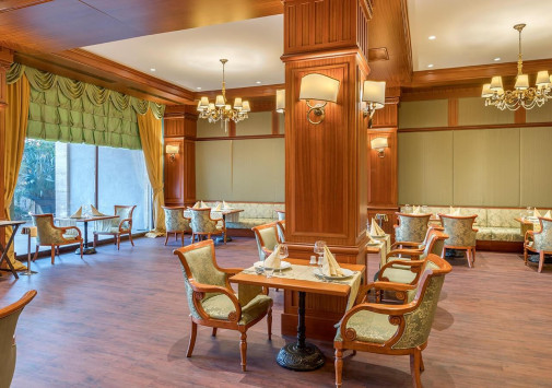• В уютном ресторане а la carte Steak House готовят вкусные блюда из отборных сортов мяса.