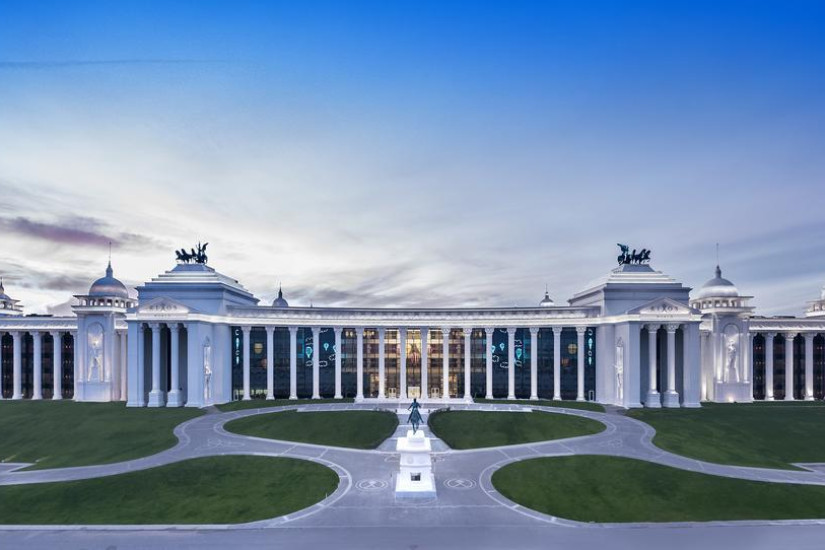 - 130 м2. Оформлен в сказочной тематике, состоит из спальни, гостиной, ванной комнаты с «ливневым» душем и двухсекционной раковиной, гостевой ванной комнаты, гардеробной, большой террасы (30 м2) с обеденной зоной, зоной отдыха и панорамным видом на парк. Гостям номера предоставляются услуги дворецкого.