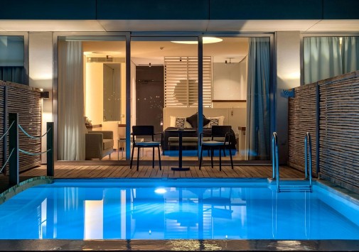 В отеле имеется большой открытый бассейн с панорамным видом на море.