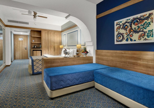 В отеле имеются детский бассейн и аквапарк с водными горками, для детей 4-12 лет работает клуб с игровой площадкой, игровой комнатой и комнатой отдыха, также возможны услуги няни (по запросу).