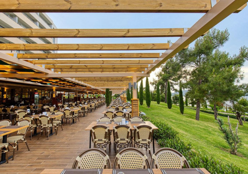 • Главный ресторан Pina с просторной террасой и великолепным видом на море предлагает «шведский стол» с богатым выбором блюд интернациональной кухни.