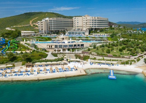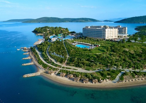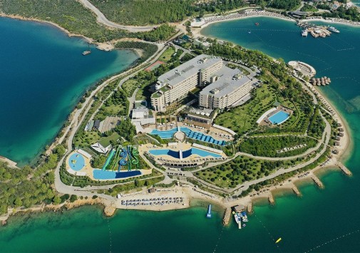 La Blanche Island Bodrum раскинулся на живописном полуострове Пина, окруженном бирюзовыми водами Эгейского моря, среди 82 000 м2 ухоженных садов, у двух великолепных частных пляжей. Гостям современного отеля предложены прекрасные условия для отдыха: просторные комфортабельные номера с балконами, рестораны, представляющие кухню разных стран, уютные бары, первоклассный Spa-центр, детский клуб, аквапарк, лазурные бассейны и масса развлечений на любой вкус – от водного спорта и фитнеса до дискотек и феерических шоу. La Blanche Island Bodrum – замечательный выбор для активного и семейного отдыха.