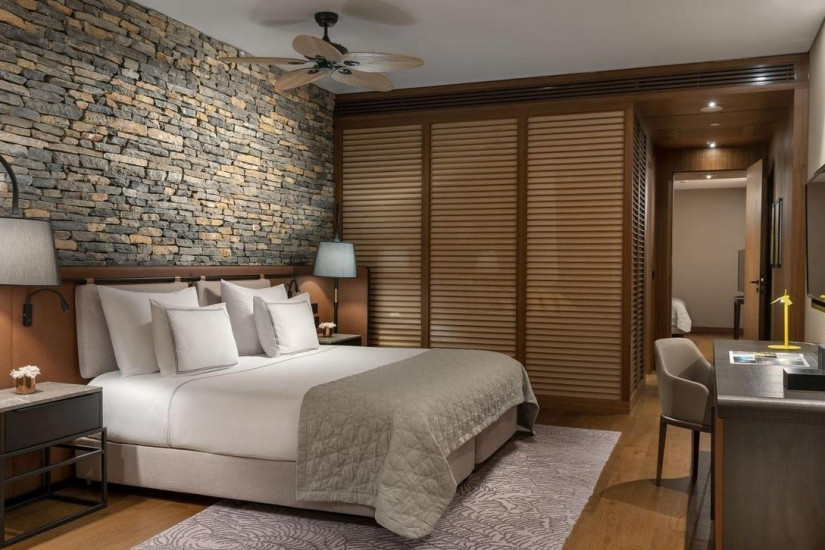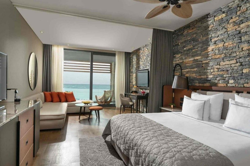 - 95 м2. Состоит из двух спален (с кроватью king-size и двумя односпальными кроватями), гостиной, двух ванных комнат с душем, в некоторых номерах балкон с зоной отдыха и видом на море. Номера располагаются в угловой части отеля. Максимальное размещение – 6 человек.