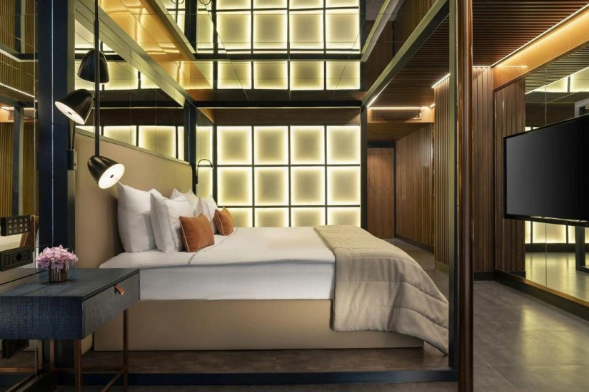 - 55 м2. Номер с оригинальным дизайном и панорамными, во всю стену окнами состоит из спальни с кроватью king-size и зоной отдыха с диваном, ванной комнаты с душем, в некоторых номерах балкон с гидромассажной ванной, зоной отдыха и видом на море. Максимальное размещение – 3 человека. Гостям номера предоставляются привилегии Lujo Edition