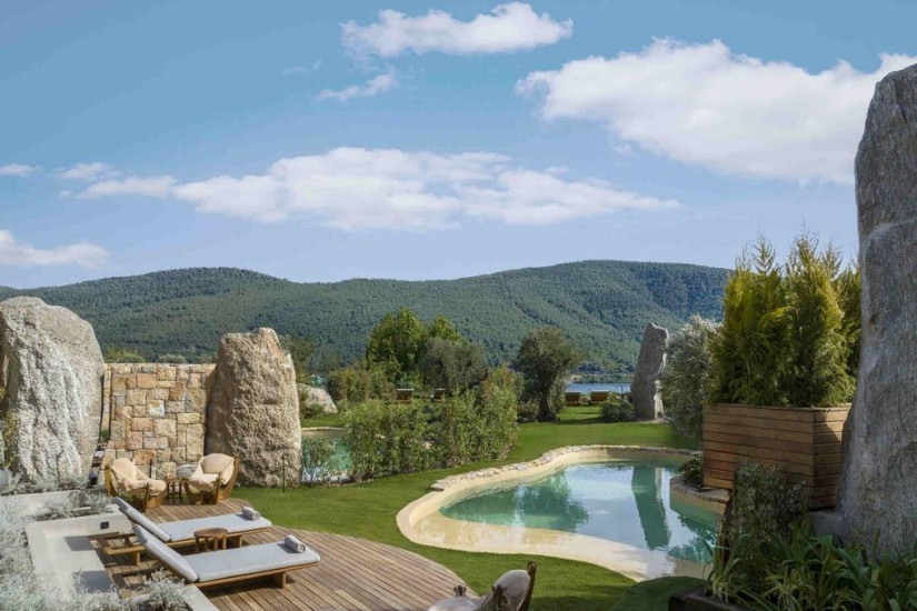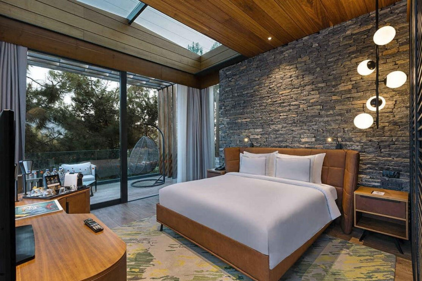 - 100 м2. Элегантная двухуровневая вилла состоит из трех спален (одна с кроватью king-size и две – с двумя кроватями twin), гостиной c обеденной зоной, гардеробных, двух ванных комнат, балконов с зоной отдыха, сада с подогреваемым бассейном и видом на море. Максимальное размещение – 6 человек. Виллы расположены в лесу. Гостям виллы предоставляются привилегии Lujo Edition