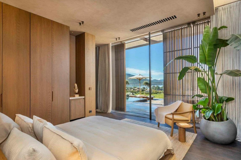 - 220 м2. Вилла с современным дизайном состоит из двух спален (с кроватью king-size и с двумя кроватями twin), гостиной c обеденной зоной, мини-кухни, гардеробной, двух ванных комнат, частного сада, террасы с подогреваемым бассейном, зоной отдыха, обеденной зоной и панорамным видом на море. Максимальное размещение – 4 человека.