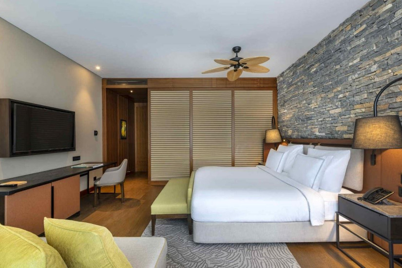 - 30-45 м2. Состоит из спальни с кроватью king-size или двумя односпальными кроватями и зоной отдыха с диваном, ванной комнаты с душем, в некоторых номерах балкон с зоной отдыха и видом на море или территорию отеля. Максимальное размещение – 3 человека.