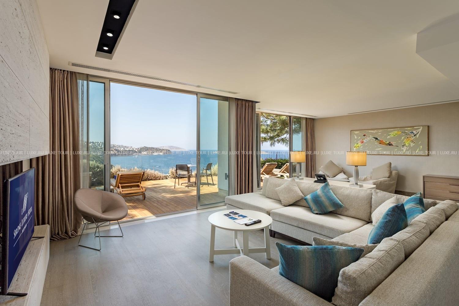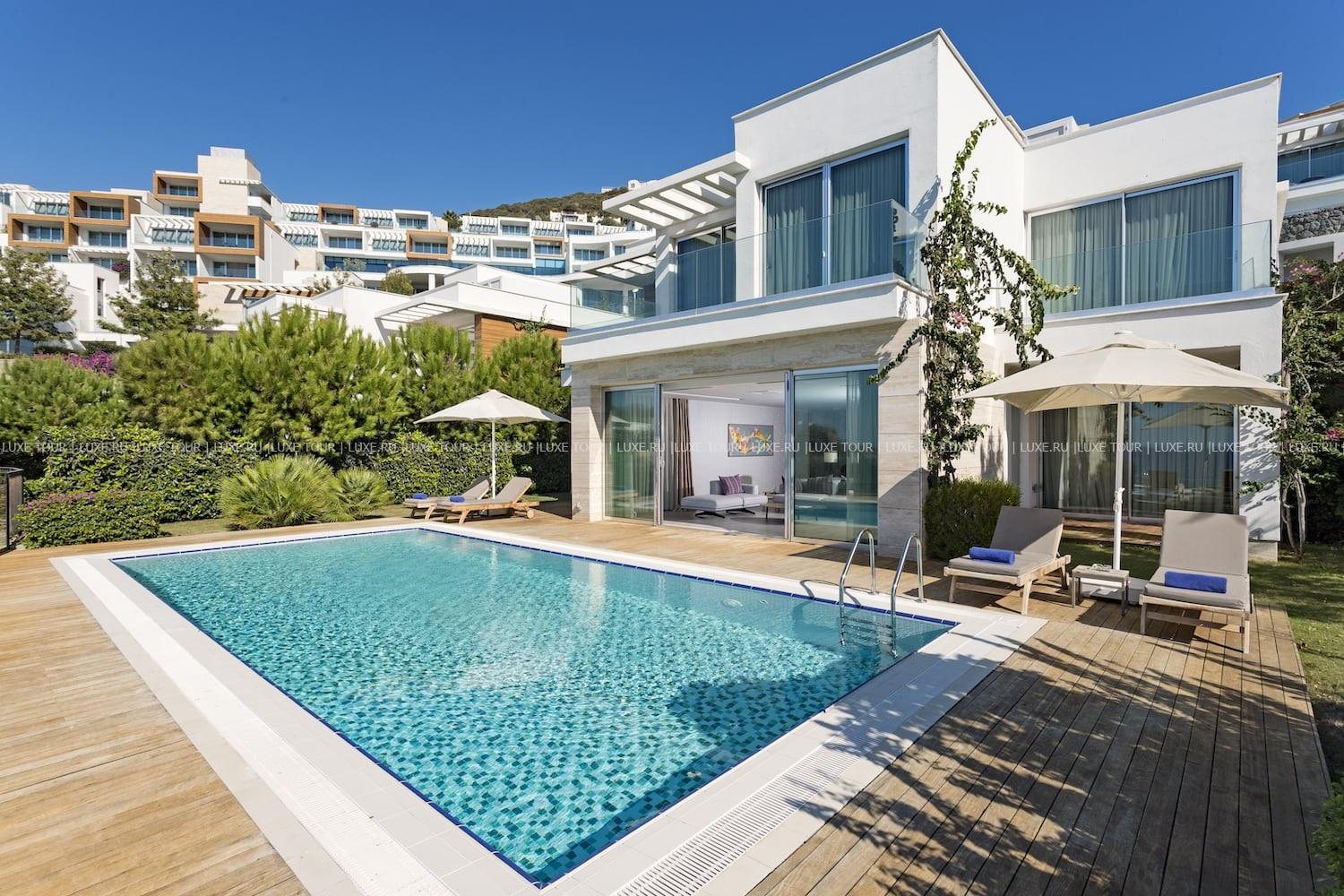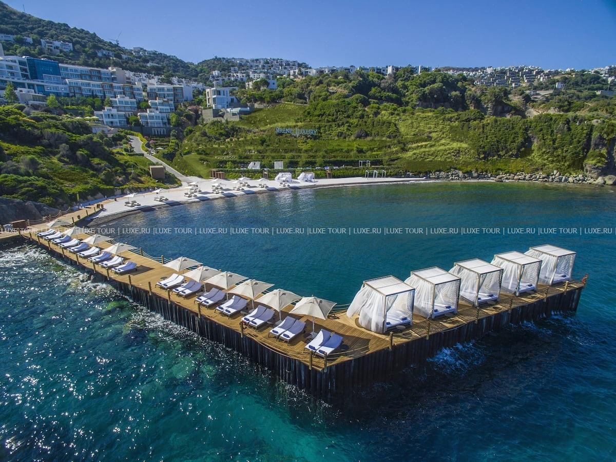 Современные здания Sirene Luxury Hotel Bodrum разместились среди благоухающих садов, у частного пляжа в красивой уединенной бухте. Чарующим видом на закаты над Эгейским морем здесь можно любоваться с балконов просторных стильных номеров, с террас шикарных вилл с собственными бассейнами, плавая в лазурном бассейне-инфинити, наслаждаясь вкусными блюдами в ресторанах, и потягивая коктейли в барах. Также к услугам гостей роскошный Spa-комплекс площадью 2700 м2, большой фитнес-центр, замечательный детский клуб, банкетный и конференц-залы и другой первоклассный сервис. Sirene Luxury Hotel Bodrum предлагает прекрасный отдых для всей семьи в живописном уголке Бодрума.