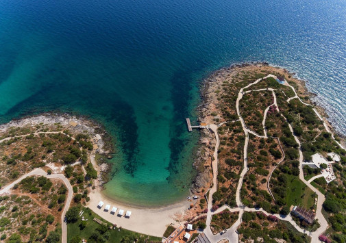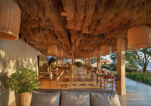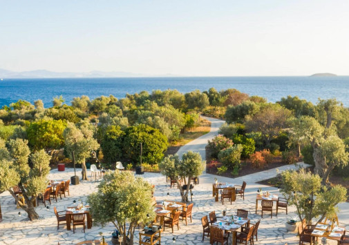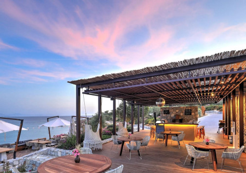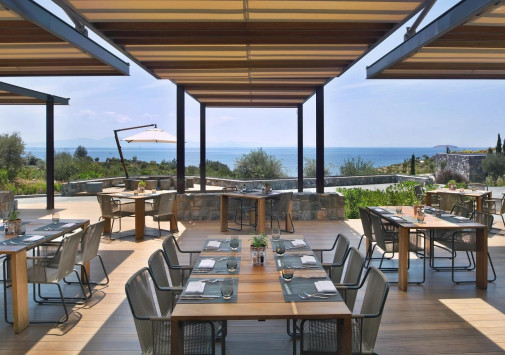 • Уютный ресторан Wild Thyme с открытой террасой и видом на Эгейское море и греческие острова специализируется на паназиатской кухне.