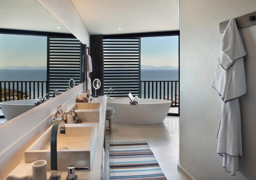 В отеле имеются два открытых бассейна, включая бассейн с панорамным видом на море, и крытый подогреваемый бассейн в Spa-центре.