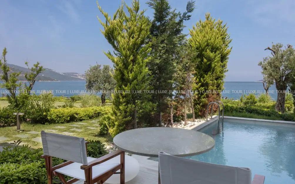 В отеле имеются два открытых бассейна с подогревом, гидромассажной зоной и панорамным видом на море.
