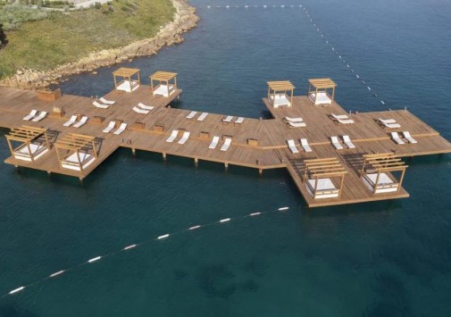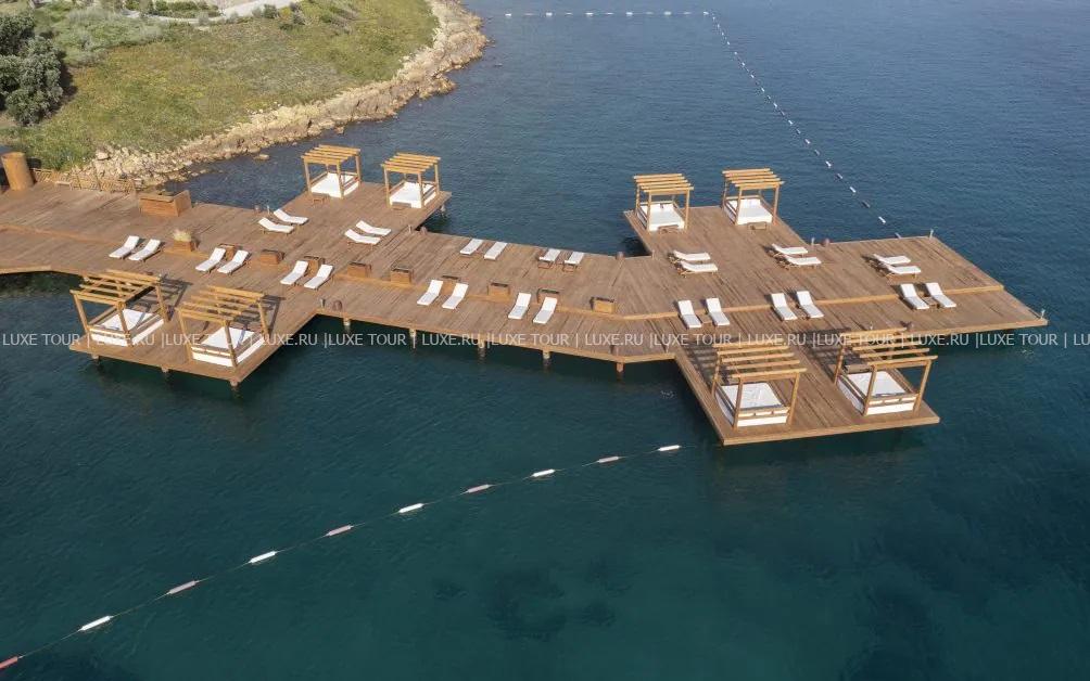 Отель располагает пляжем-платформой с пляжным клубом и павильонами для отдыха.