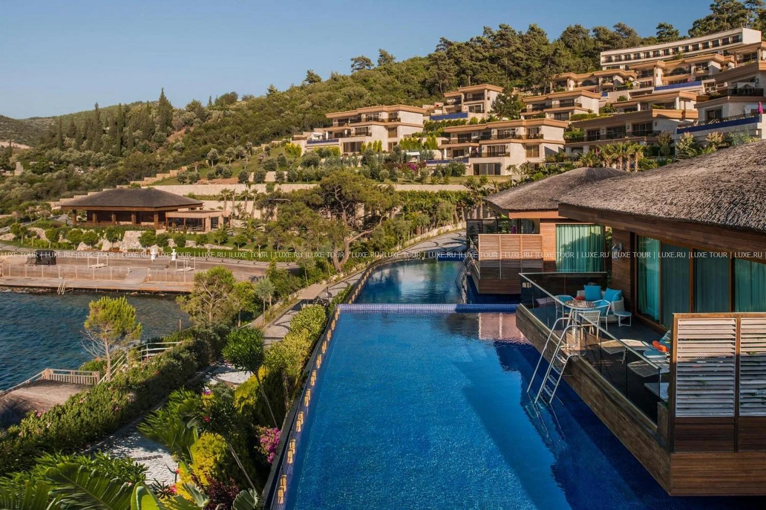 The Plaza Bodrum раскинулся на уединенном полуострове, окруженном хрустальной бирюзой Эгейского моря, на 75 000 м2 территории с ландшафтными садами, комплексом бассейнов и частным пляжем в заливе Торба. Отель приглашает гостей перенестись в настоящую сказку: шикарные номера в дворцовом стиле и роскошные виллы с персональными бассейнами, рестораны и бары, впечатляющие гастрономическим разнообразием, великолепный Spa-центр, детский клуб, спорт и развлечения на любой вкус и возраст. The Plaza Bodrum предлагает эксклюзивный отдых в чарующем уголке Бодрума.