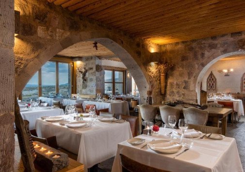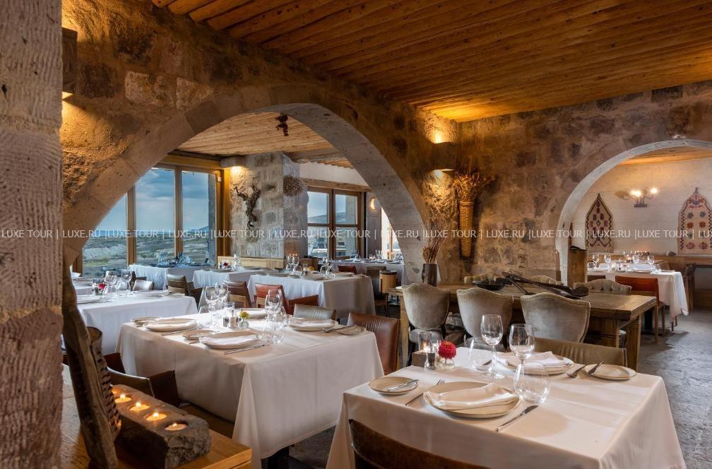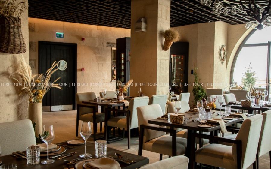 - Ресторан Seki с аутентичным интерьером, открытой террасой и панорамным видом на долину, крепость Тираз и вулкан Эрджияс, предлагает разнообразие блюд региональной и международной кухни, и богатую карту вин из собственного винного погреба отеля.