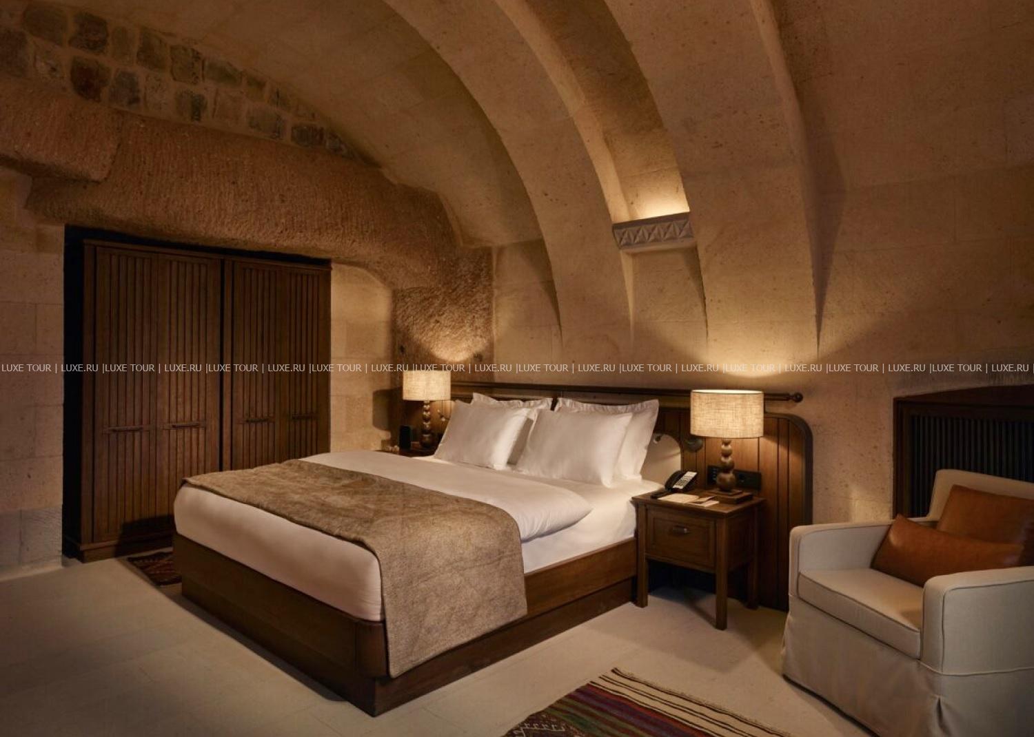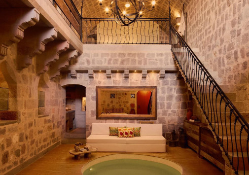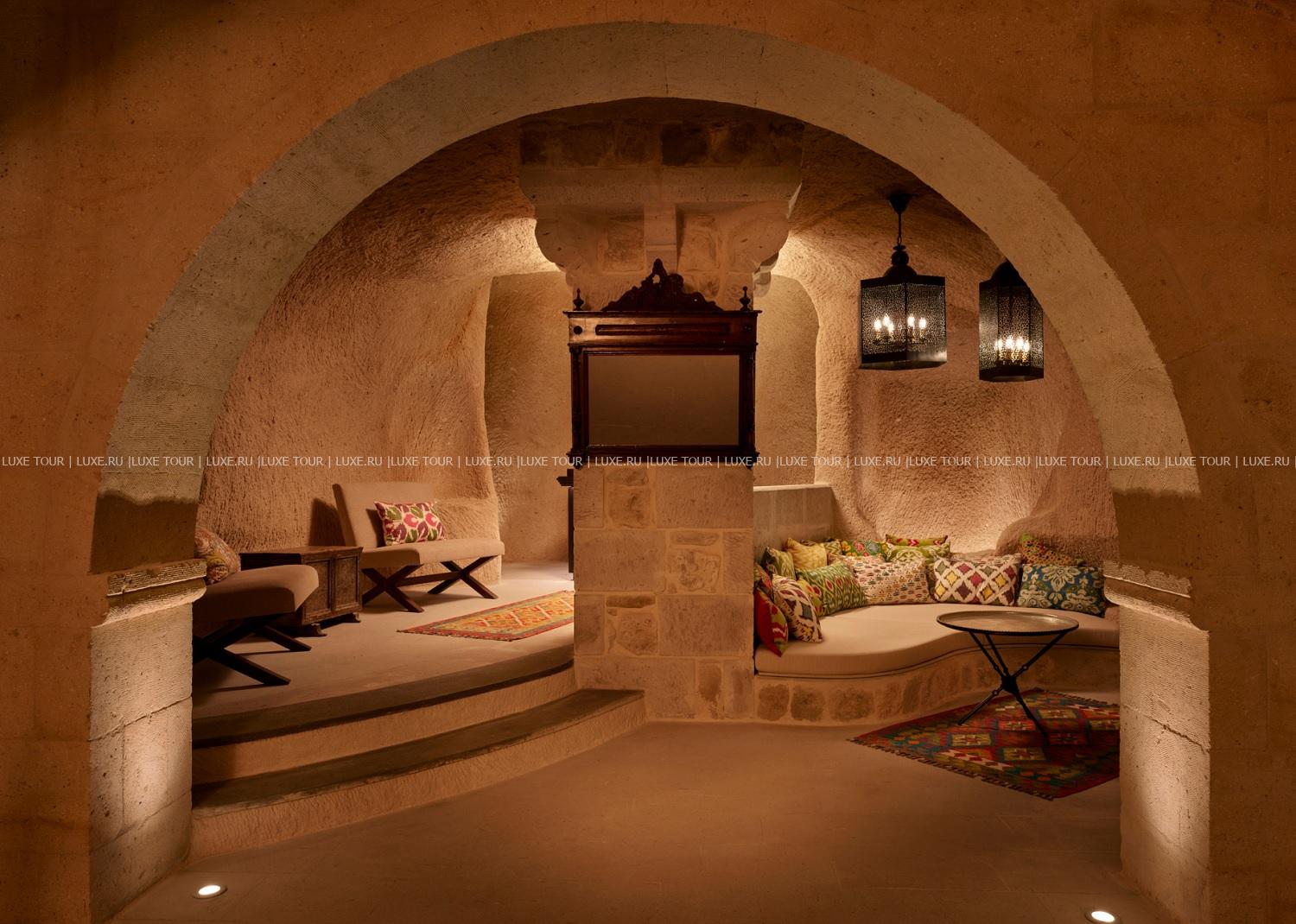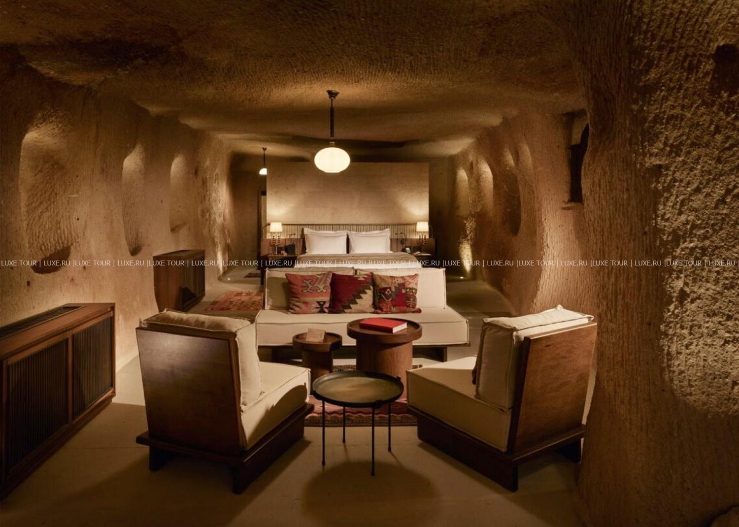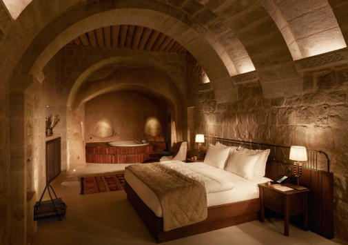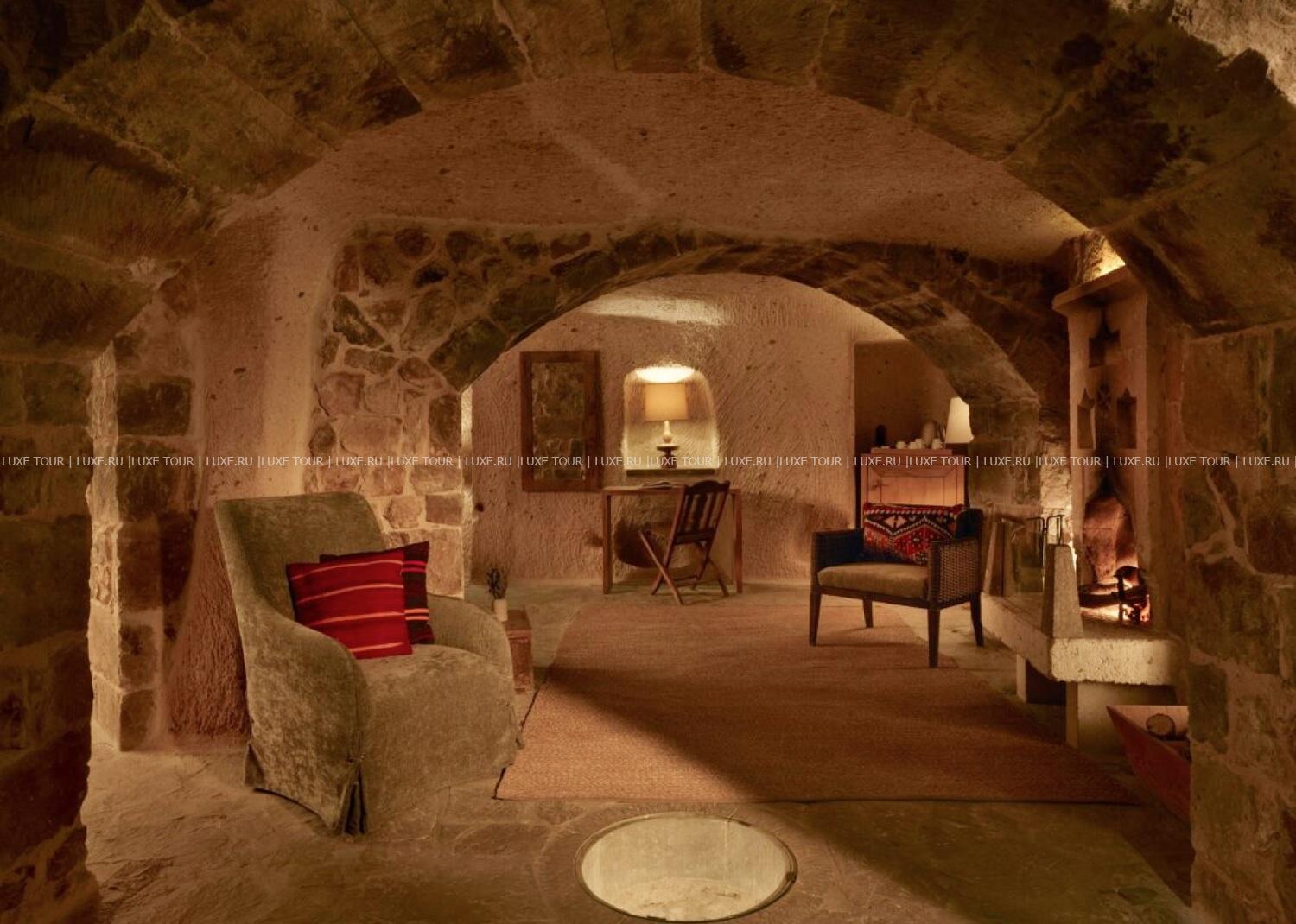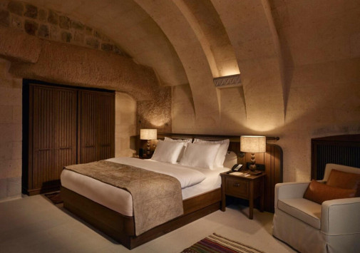 Среди волшебных каппадокийских пейзажей, рядом с легендарной крепостью Учхисар находится Argos In Cappadocia – удивительный отель, разместившийся в древних пещерах, тоннелях и руинах 2000-летнего монастыря. Здесь все дышит историей: полумрак залов, каменные стены и своды, цветущие сады с вековыми деревьями и террасы, с которых открывается фантастический вид на Голубиную долину и вулкан Эрджияс. Богатейшее наследие региона отражено в концепции отеля, в оформлении номеров, в гастрономии и разнообразии возможностей для знакомства с аутентичными традициями этого места. При этом, гостям предлагаются самые современные услуги – от панорамного бассейна, фитнес-зала и эксклюзивных процедур в Spa-центре до комфортабельных номеров, расположенных в скальных пещерах и старинных зданиях. Argos In Cappadocia – квинтэссенция древней истории, уникальной культуры и завораживающей природы Каппадокии.