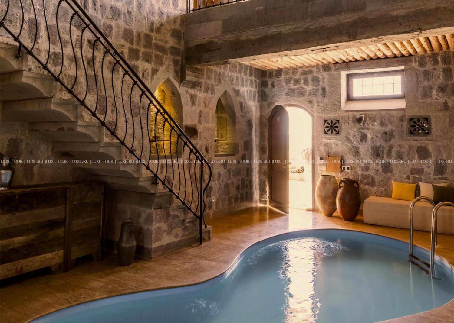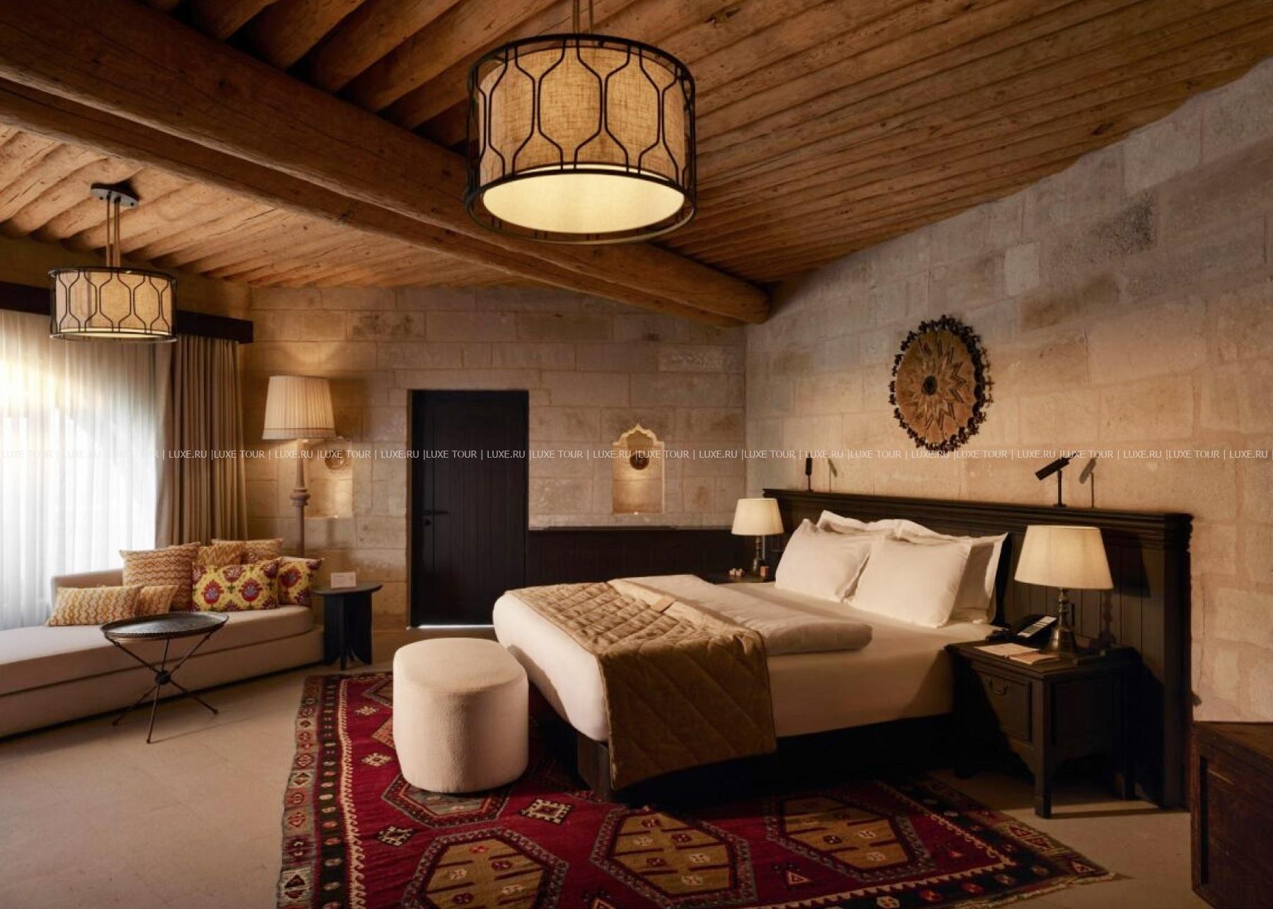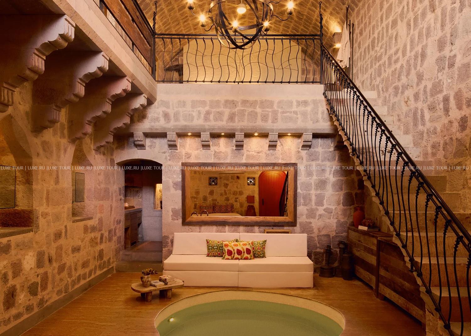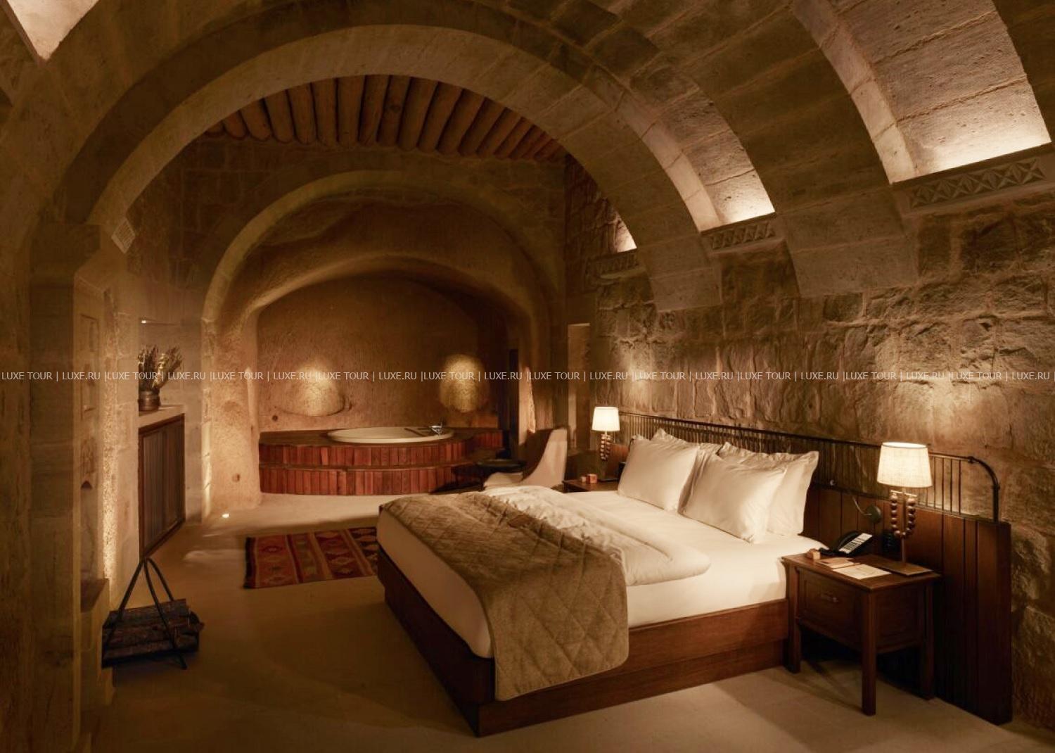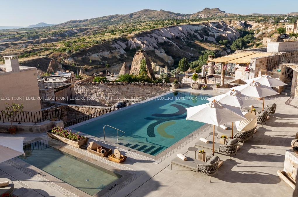 Среди волшебных каппадокийских пейзажей, рядом с легендарной крепостью Учхисар находится Argos In Cappadocia – удивительный отель, разместившийся в древних пещерах, тоннелях и руинах 2000-летнего монастыря. Здесь все дышит историей: полумрак залов, каменные стены и своды, цветущие сады с вековыми деревьями и террасы, с которых открывается фантастический вид на Голубиную долину и вулкан Эрджияс. Богатейшее наследие региона отражено в концепции отеля, в оформлении номеров, в гастрономии и разнообразии возможностей для знакомства с аутентичными традициями этого места. При этом, гостям предлагаются самые современные услуги – от панорамного бассейна, фитнес-зала и эксклюзивных процедур в Spa-центре до комфортабельных номеров, расположенных в скальных пещерах и старинных зданиях. Argos In Cappadocia – квинтэссенция древней истории, уникальной культуры и завораживающей природы Каппадокии.