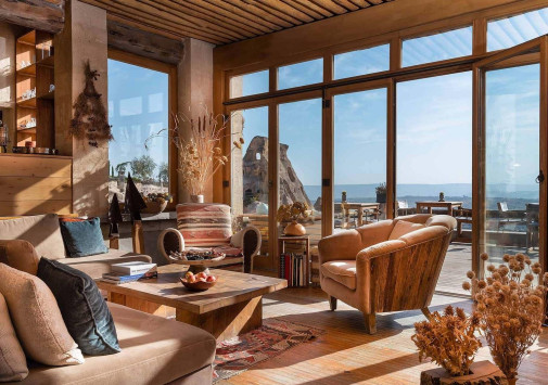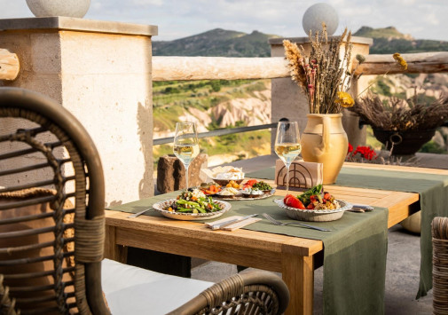 - Лаундж-бар Nahita с открытой террасой и потрясающим видом на вулкан Эрджияс и Голубиную долину – идеальное место для легкой трапезы и отдыха за коктейлем или бокалом вина.