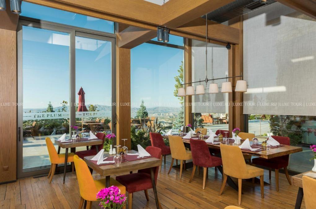 - Ресторан Plum с просторной террасой и панорамным видом на сказочные пейзажи Каппадокии предлагает блюда современной средиземноморской кухни, приготовленные из свежих продуктов с местных ферм. Изысканную кухню дополняют превосходные вина из богатой коллекции винного погреба ресторана, в том числе – с виноградников региона.