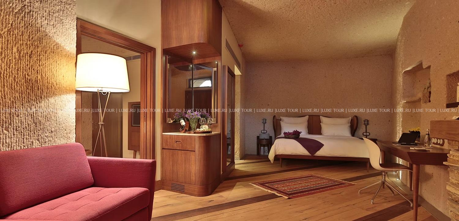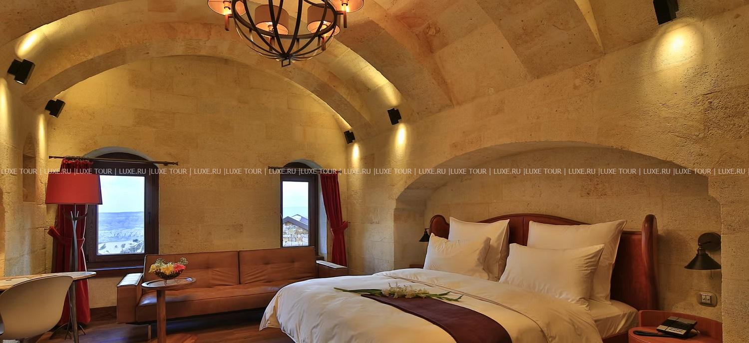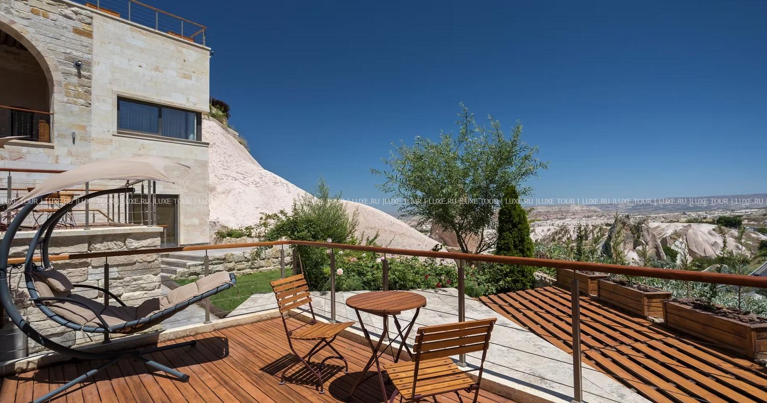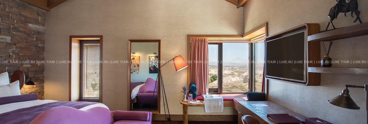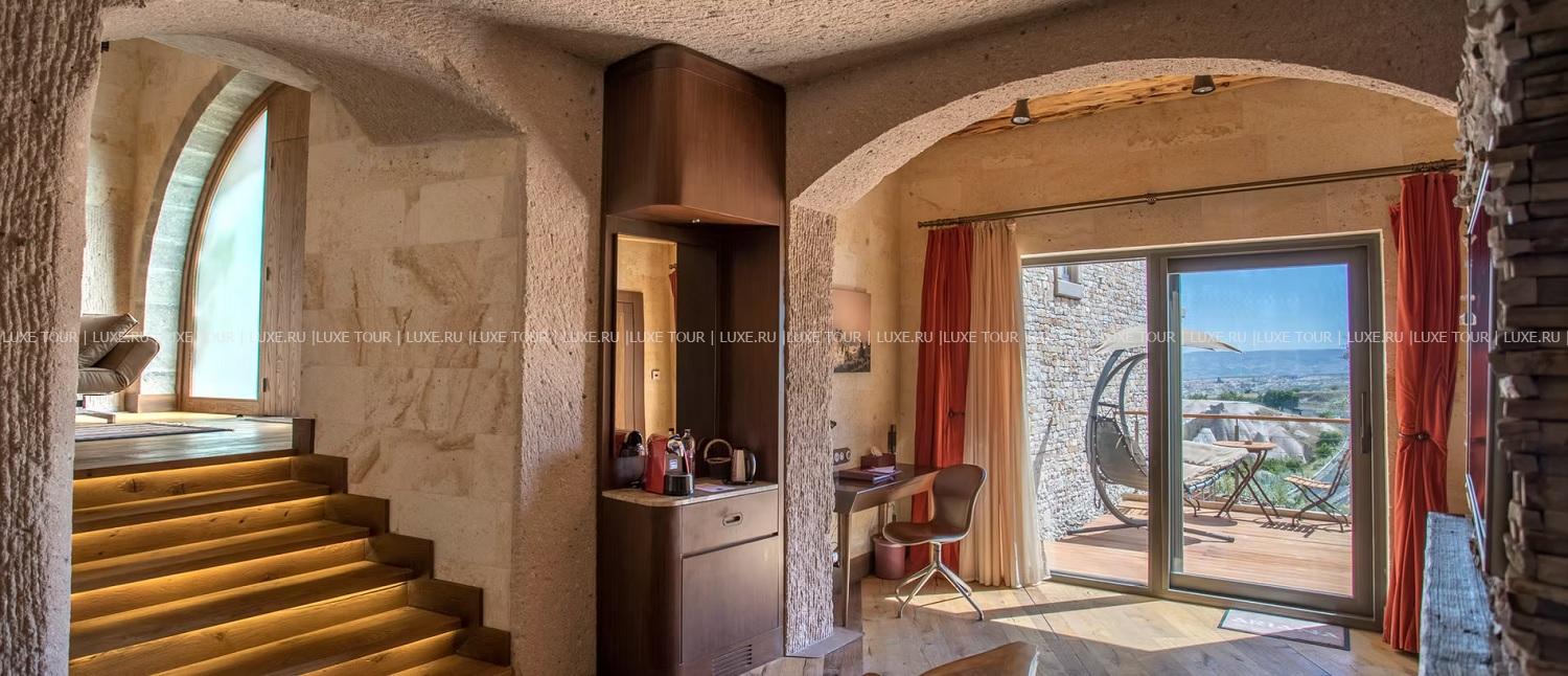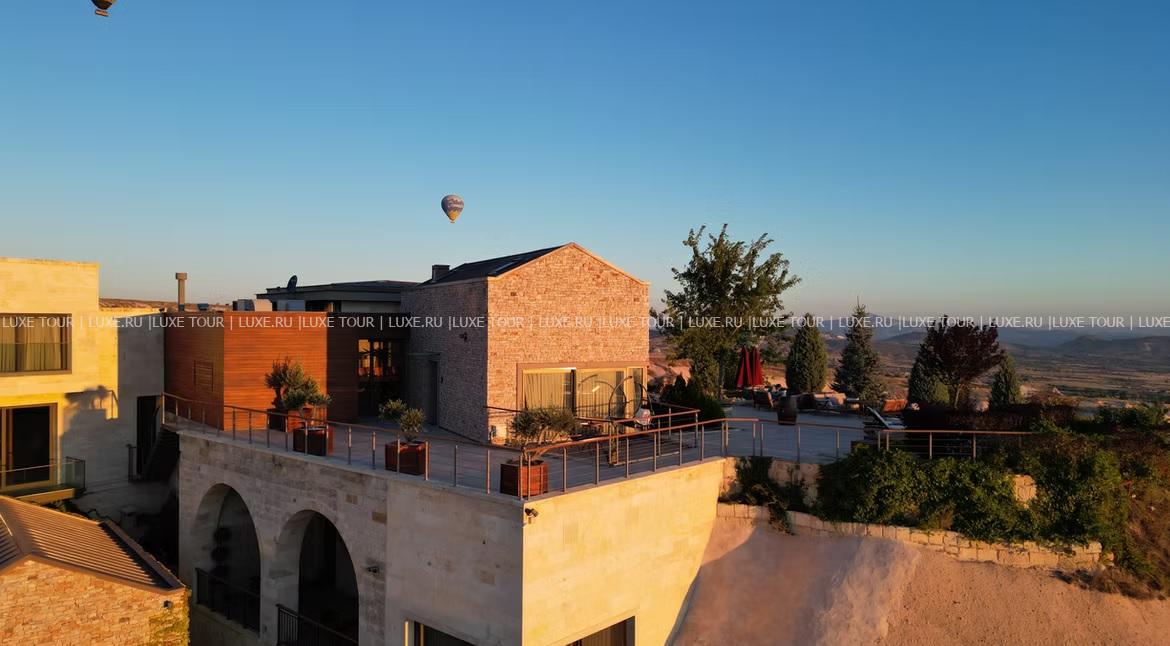 Ariana Sustainable Luxury Lodge разместился на вершине скалы, над долиной Учхисар, захватывающий вид на которую открывается со всех террас отеля, названного в честь древней богини солнца. Здесь всего 11 номеров – каждый с индивидуальным интерьером, сочетающем современный дизайн и историческое наследие Анатолии: старинные своды, потолочные балки, мозаичные панно на стенах и аутентичные произведения искусства. В ресторане гости могут насладиться вкусными блюдами, приготовленными из свежих фермерских продуктов, и изысканными винами с местных виноградников, а во время увлекательных экскурсий познакомиться с уникальной природой и древней историей региона. Ariana Sustainable Luxury Lodge – «маленький роскошный» эко-отель, окруженный сказочными пейзажами Каппадокии.