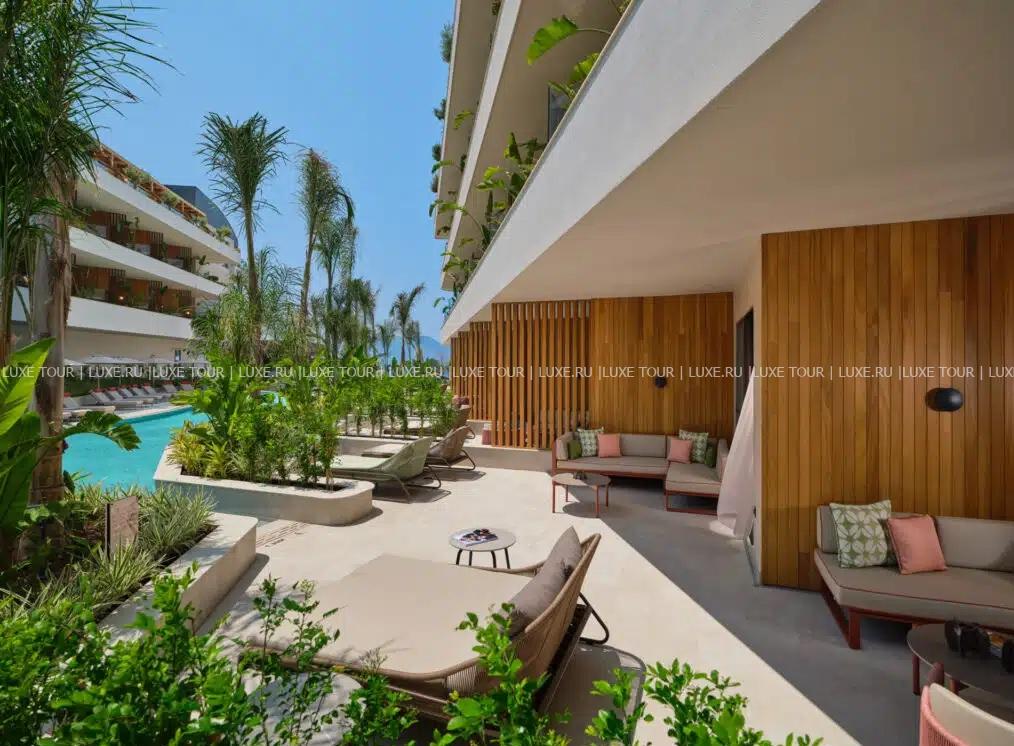 - Также предлагаются напитки в барах у семейного бассейна и у бассейна для взрослых, обслуживание в номерах и по системе «Все включено».