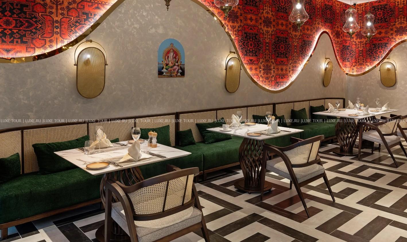 - В ресторане a la carte Puri с ярким оригинальным интерьером подают пряные индийские блюда.