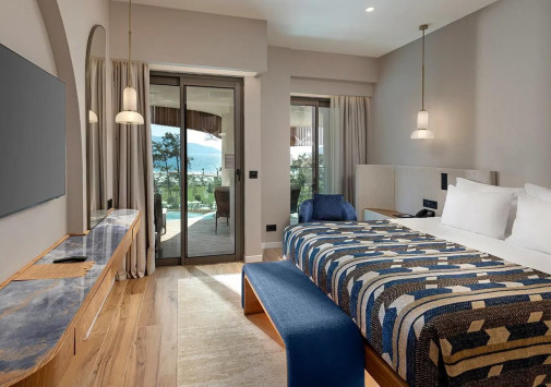 Отель располагает оборудованным песчаным 220-метровым пляжем, отмеченным Голубым флагом и разделенным на семейную зону и зону для взрослых.
