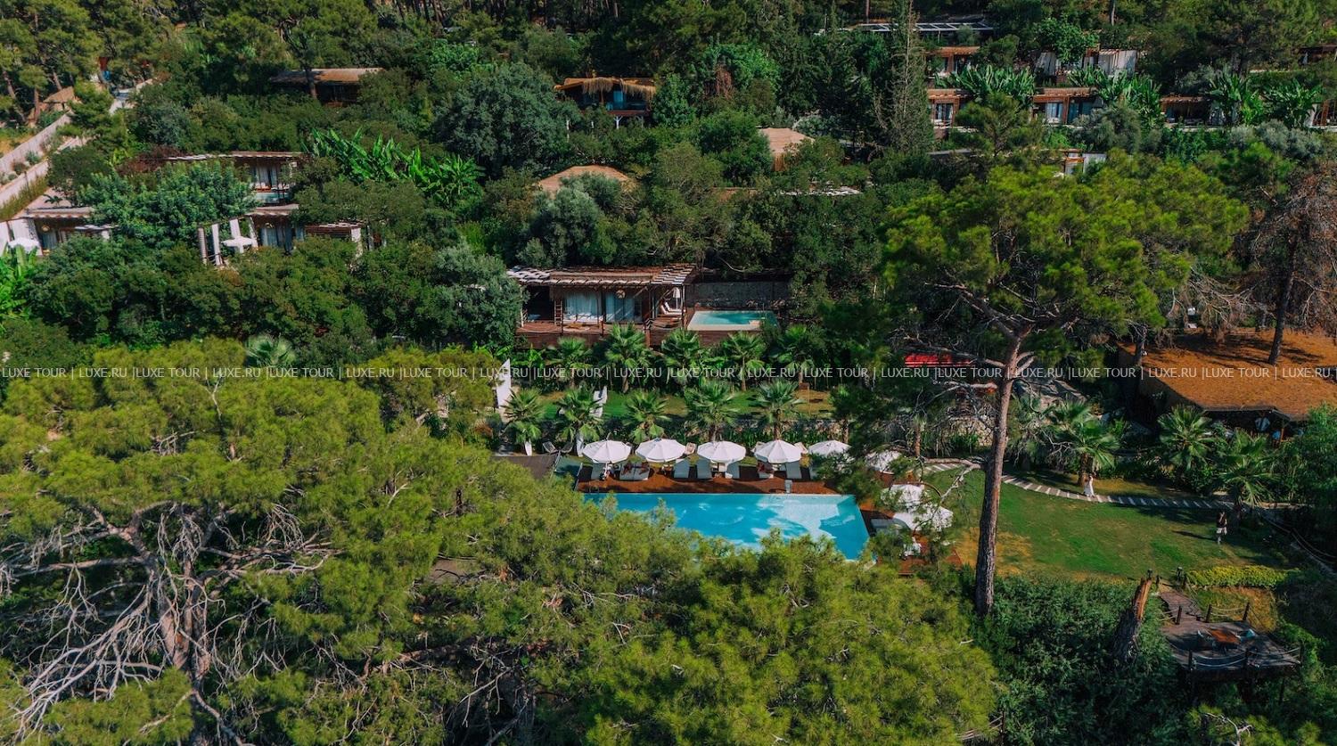 Отель располагает виллами различных категорий. Шикарные виллы, окруженные лесными зарослями, сочетают стильный современный дизайн. средиземноморские мотивы и оригинальные детали интерьера, а с террас с персональными бассейнами открывается потрясающий панорамный вид на сверкающее бирюзой море и живописные горы. В каждом номере: Boutique Suit: