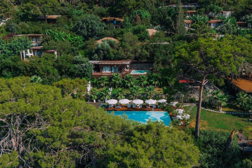 - Отель располагает виллами различных категорий. Шикарные виллы, окруженные лесными зарослями, сочетают стильный современный дизайн. средиземноморские мотивы и оригинальные детали интерьера, а с террас с персональными бассейнами открывается потрясающий панорамный вид на сверкающее бирюзой море и живописные горы.