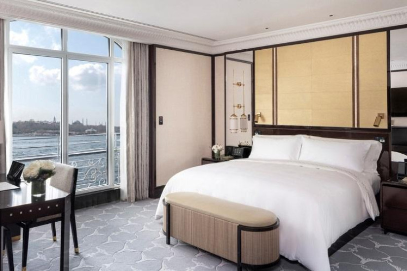- В отеле номера различных категорий. Элегантный интерьер просторных номеров, оснащенных самыми современными технологиями и первоклассными удобствами, дополнен декором в турецком стиле: инкрустация из дерева и перламутра, ковры в технике килим, оригинальные произведения искусства, отделка ценным мармарским мрамором, а из панорамных окон, с балконов и террас открывается великолепный вид на Босфор, исторический район Каракей и чудесные сады отеля.