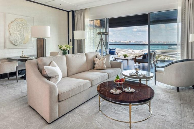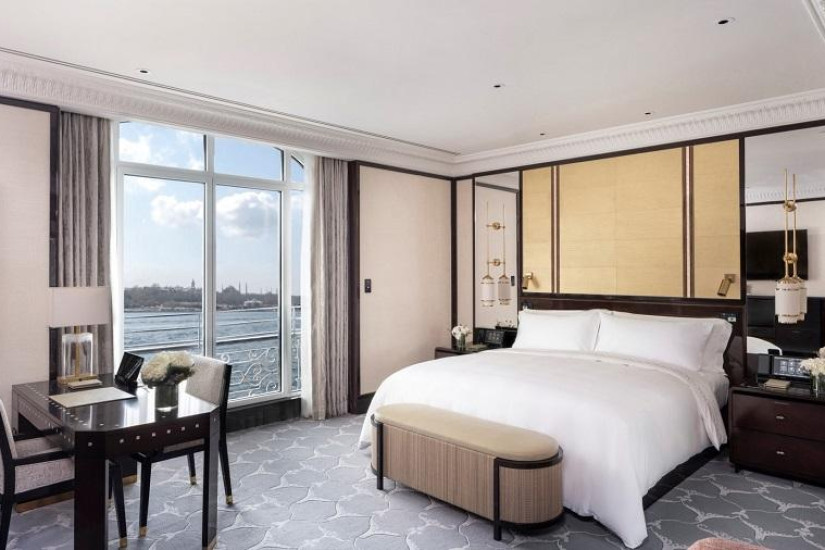 - 118 м2. Состоит из спальни с кроватью king-size или двумя кроватями twin, гостиной, гардеробной, ванной комнаты, туалетной комнаты, балкона с зоной отдыха и видом на Босфор. Максимальное размещение – 3 человека.