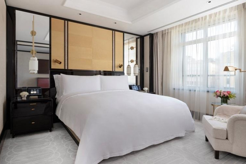 - 44-59 м2. Состоит из спальни с кроватью king-size или двумя кроватями twin, зоны отдыха, гардеробной, ванной комнаты. Вид на город. Максимальное размещение – 2 человека.
