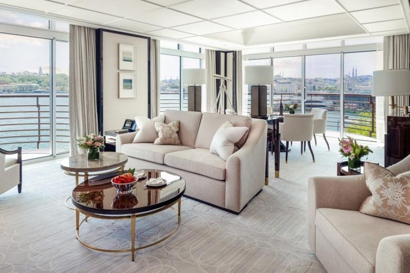 - 103-107 м2. Состоит из спальни с кроватью king-size или двумя кроватями twin, гостиной, гардеробной, ванной комнаты, туалетной комнаты, двух балконов с видом на Босфор. Максимальное размещение – 3 человека.