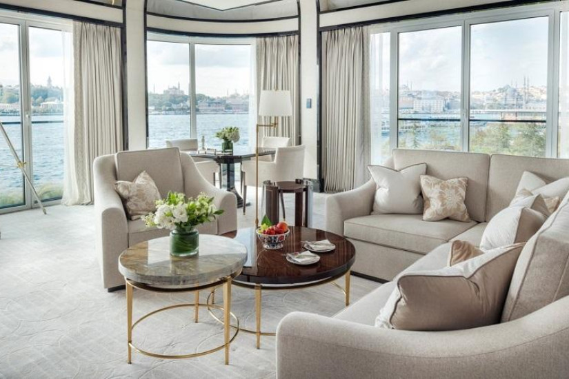 - 175 м2. Состоит из спальни с кроватями double, зоны отдыха, гостиной, столовой зоны, кабинета, гардеробной, ванной комнаты, туалетной комнаты, балконов с видом на Босфор. Максимальное размещение – 3 человека.